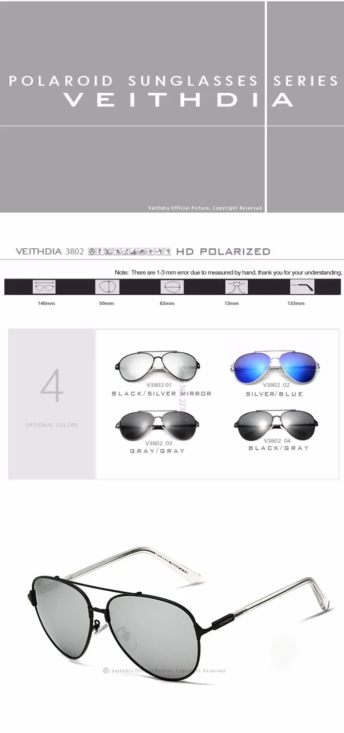 Бренд VEITHDIA, дизайнерские модные мужские солнцезащитные очки, поляризованные зеркальные линзы, очки, аксессуары для женщин, солнцезащитные очки UV400 для мужчин, 3802
