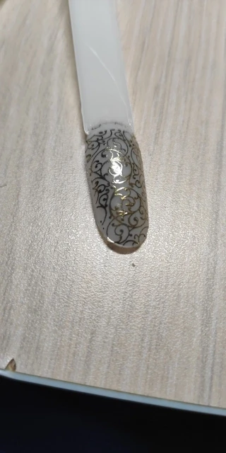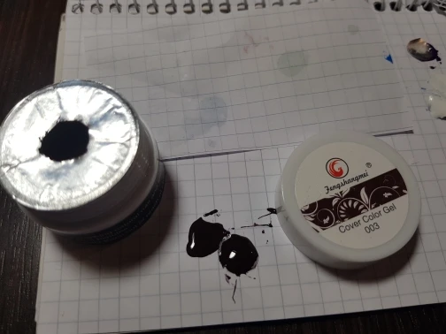 Гель краска дуже пігментірована. Можна тоненькі лінії робить, виходить тоненько не розтікається і видно. Липкого слою після просушки немає. Просихає харашо. Перепробувала уже багато фірм, і залишилися задоволена, що вирішила попробувати ще цю. Рекомендую. 10 номер чорний колір, 23 білий.