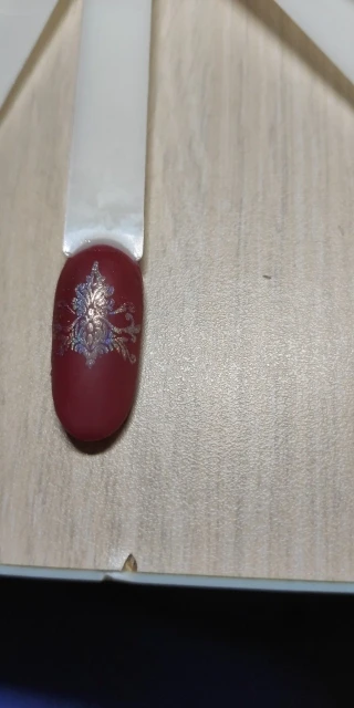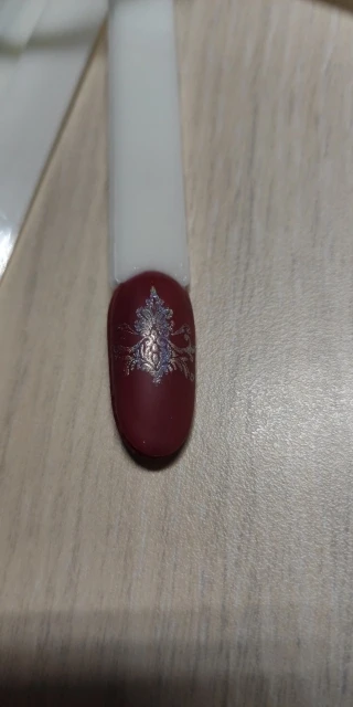 гель понравился, цвет достаточно плотный, попробовала с ним делать стемпинг, получается ну не со всеми пластинами, И на штампике если долго держать то собирается быстро. гель без липкого слоя на него хорошо втирается втирка.