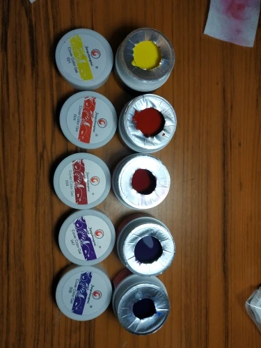пигментация очень хорошая, подходит для китайской росписи, баночки наполнены по разному,цвет на крышке банки не совпадает с содержимым, густота средняя ближе к густому но не слишком, шло долго, доставил курьер, но краски рекомендую, закажу еще