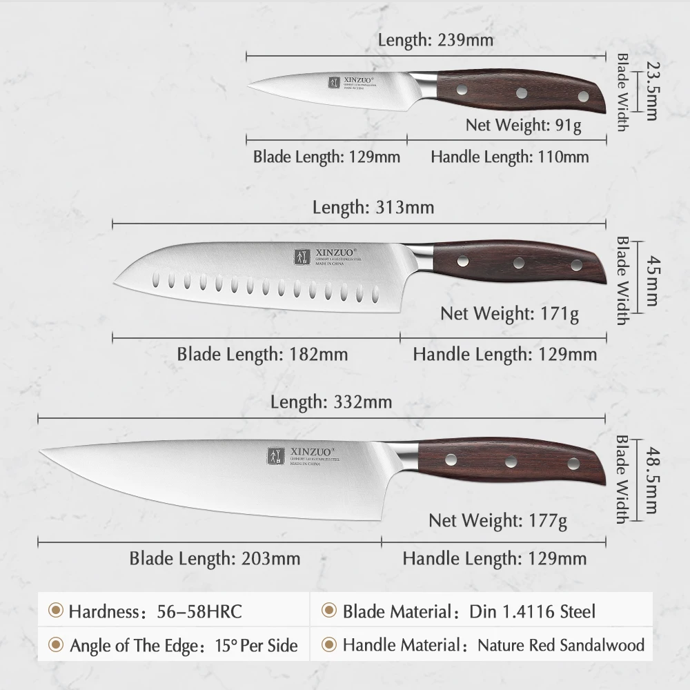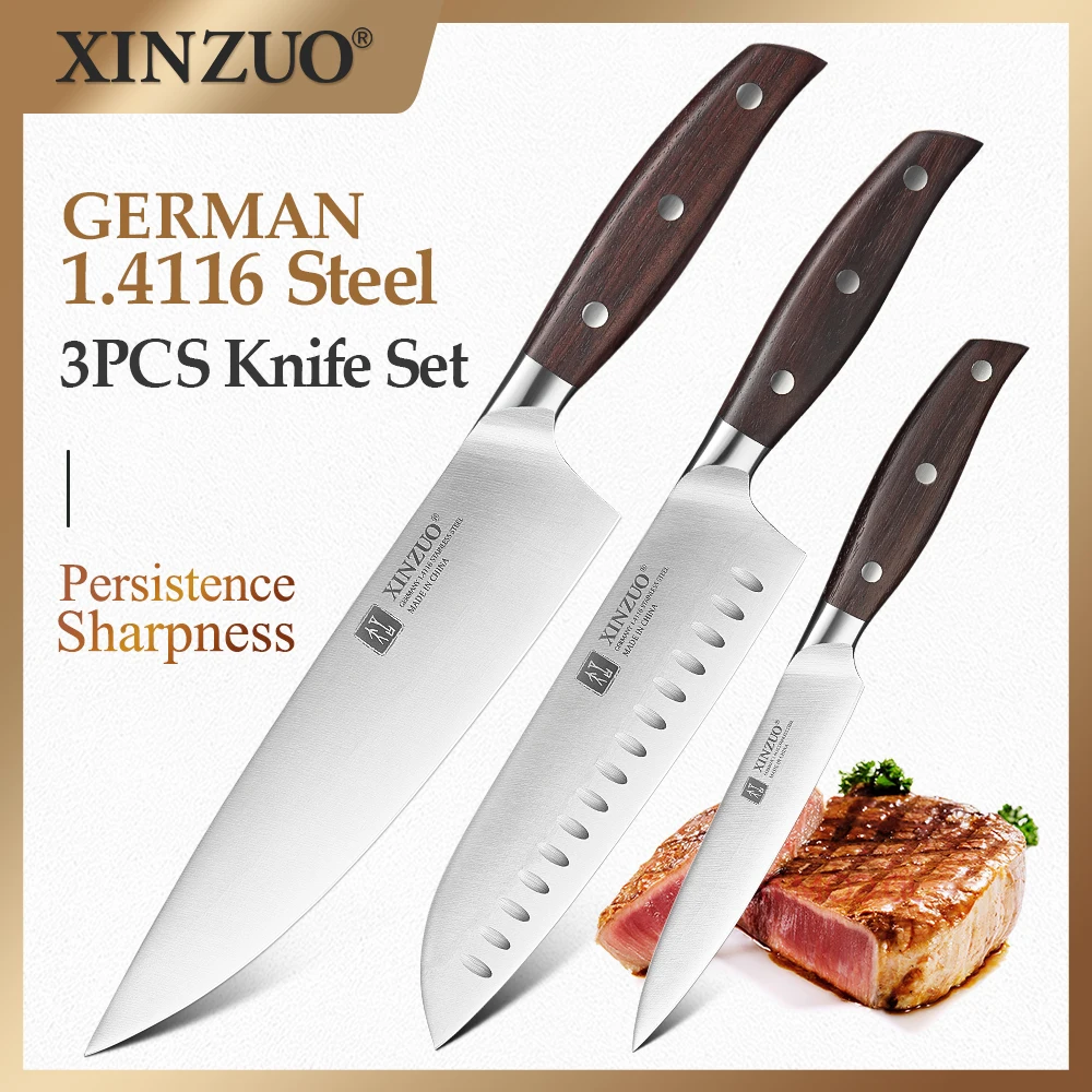Набор кухонных ножей XINZUO из 3 предметов, универсальный поварской нож сантоку из немецкой нержавеющей стали 4116, аксессуары для приготовления пищи из красного сандалового дерева