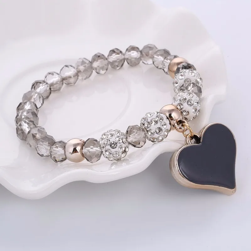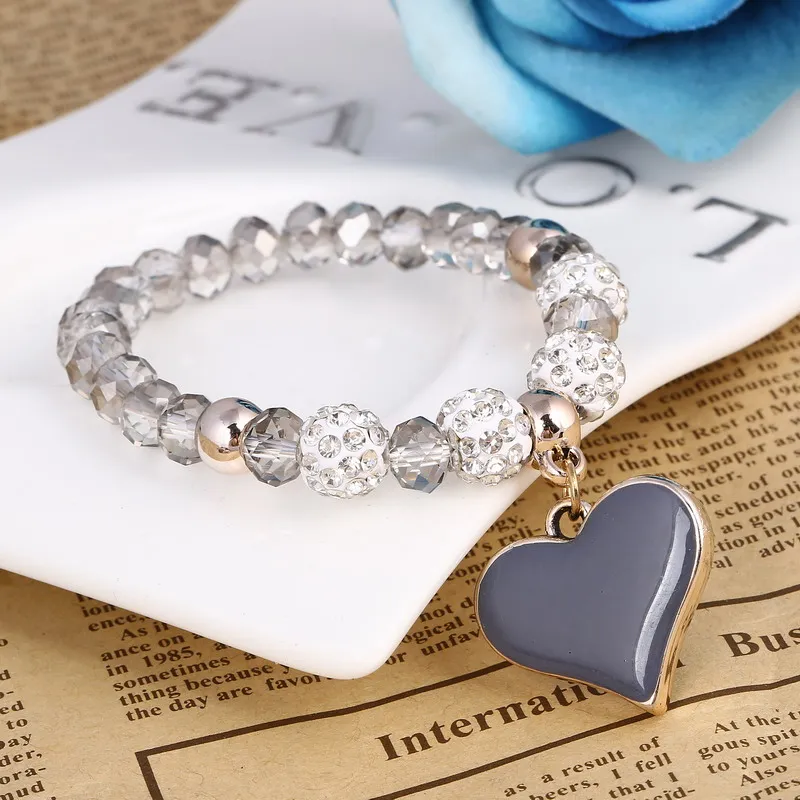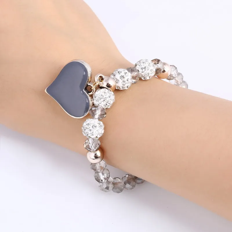 Браслеты с хрустальными бусинами, эластичные браслеты с подвеской в виде сердца, Модные женские ювелирные изделия, нежный браслет с драгоценными камнями