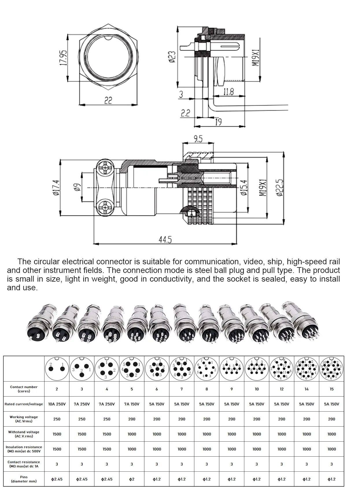 Авиационный круглый разъем GX20, штепсельная вилка и розетка 2 Pin3456789pin1 012131415pin M19, Кабельный разъем