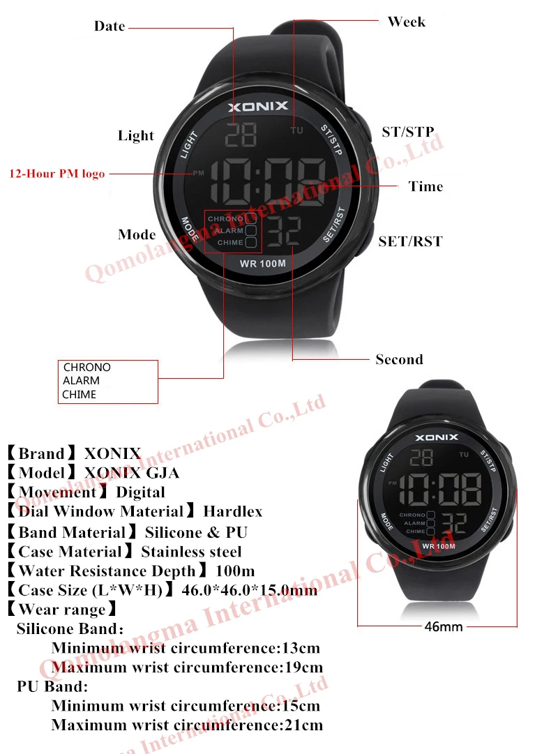 Часы пришли целые,всё как заказывал.Функционал часов меня устраивает,время 12 и 24 формата,хронограф, будильник,секундомер,таймер обратного отсчёта,почасовой сигнал,дата,дни недели,подсветка,водонепроницаемые,хорошая батарейка CR2032, для меня это оптимальный набор функций,большего мне и не надо.Внешне часы понравились,цифры видно отлично,ремешок удобный,настройка удобная,настроил их быстро по видео с ютуба.Часы пришлось поискать чтобы найти эти GJA ,со стеклом,так как пластику не доверяю,будут сильно царапаться.Друг увидел и запросил такие же,так что скоро закажу ещё.Продавец надёжный,выслал быстро,шли 3 недели,заказывайте смело!
