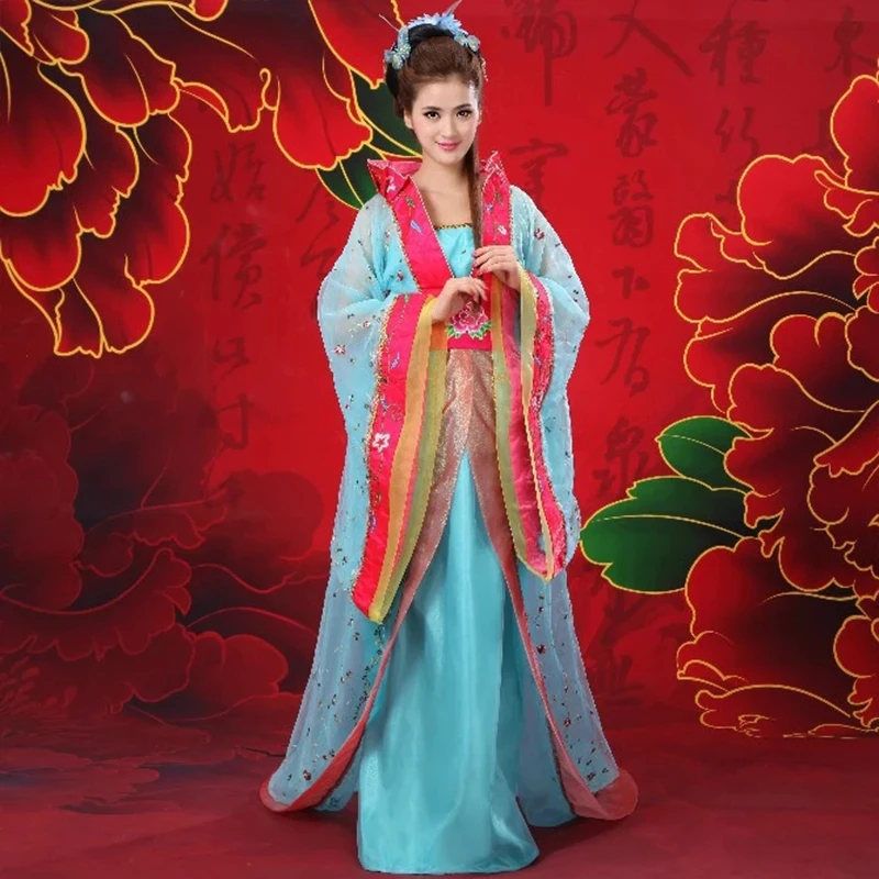 Женский костюм ханьфу, платье императорской принцессы, китайская сказочная одежда со шлейфом, платье для народного танца, одежда старой династии Тан