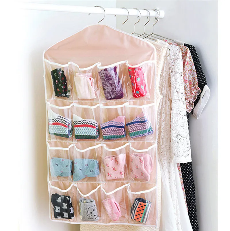 16 сетка толстые Висячие прозрачные носки косметические для сортировки нижнего белья сумка для хранения тканевая сумка для хранения ткани настенный гардероб