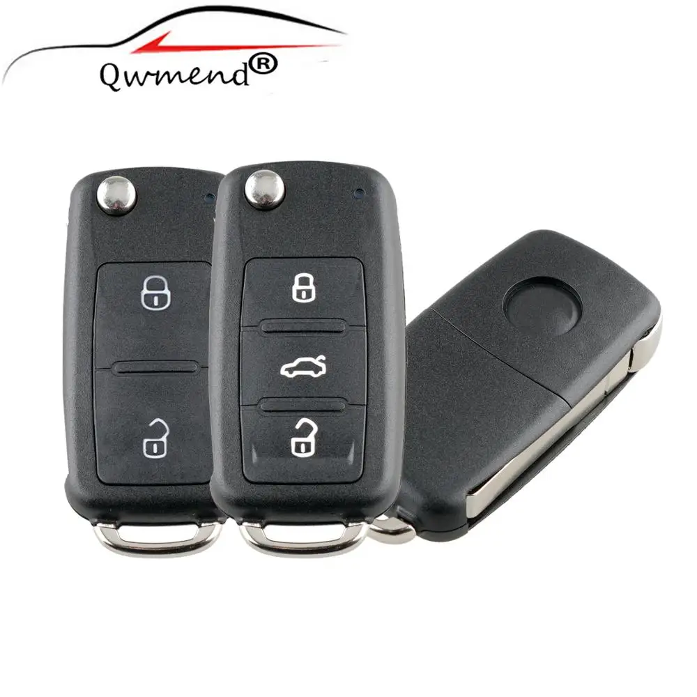 Чехол для складного ключа с 3 кнопками дистанционного управления для VW Tiguan Golf Sagitar Polo MK6 Touareg Uncut Blade HU66, чехол-накладка для 5K0837 202 AD
