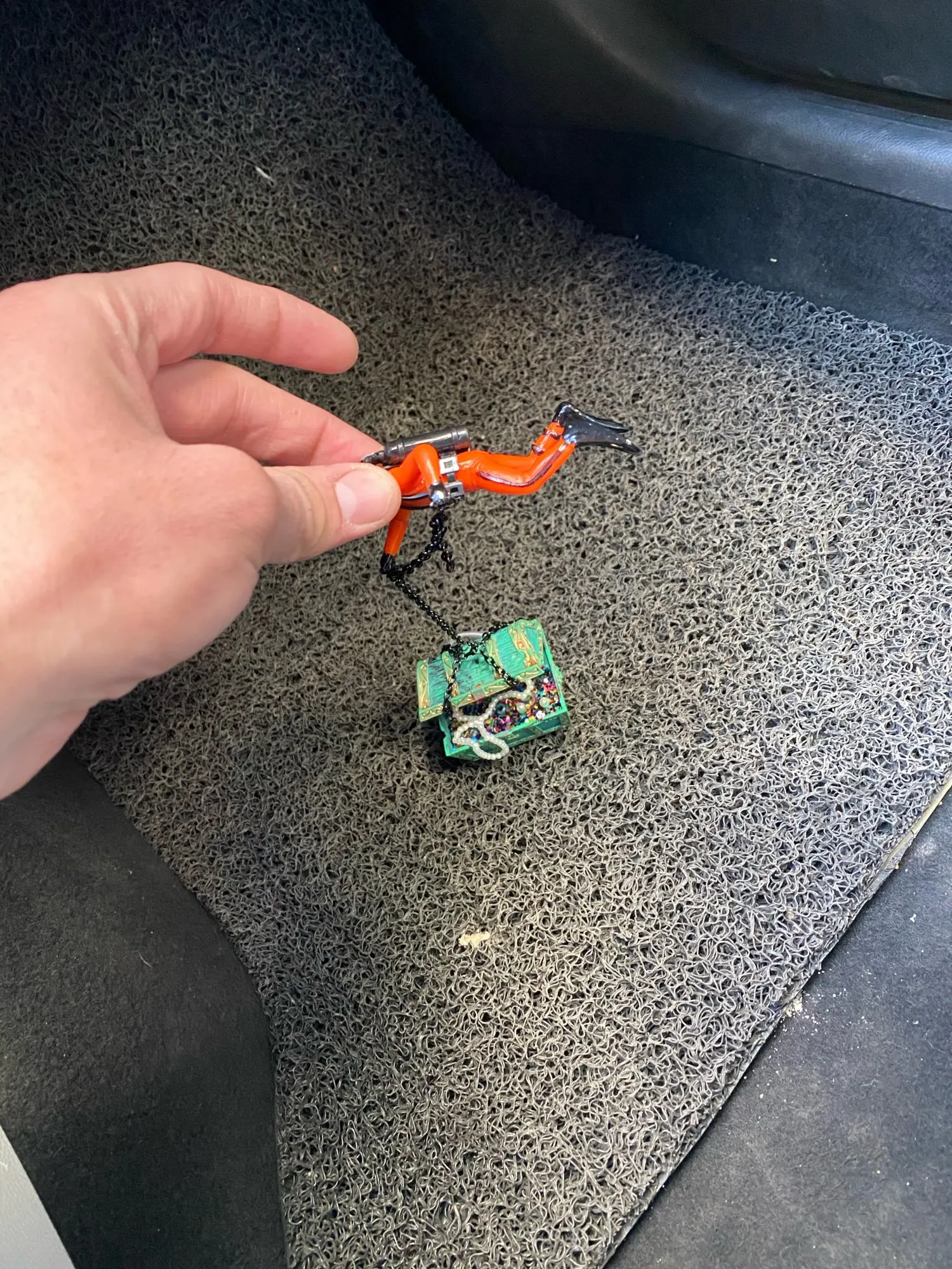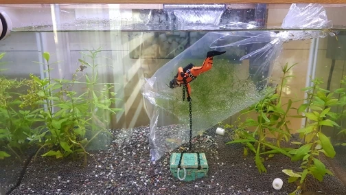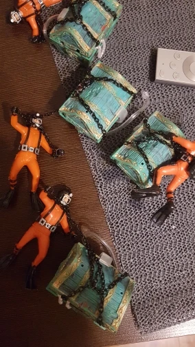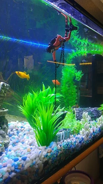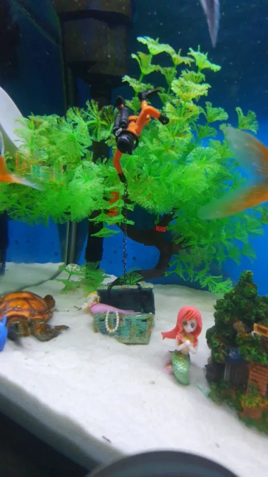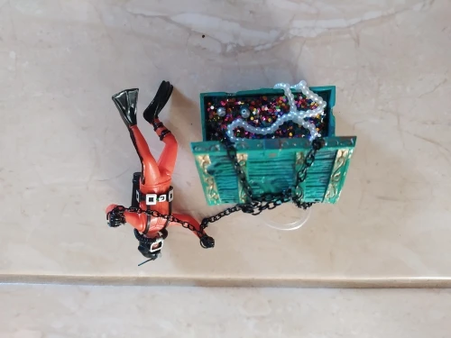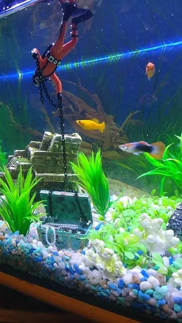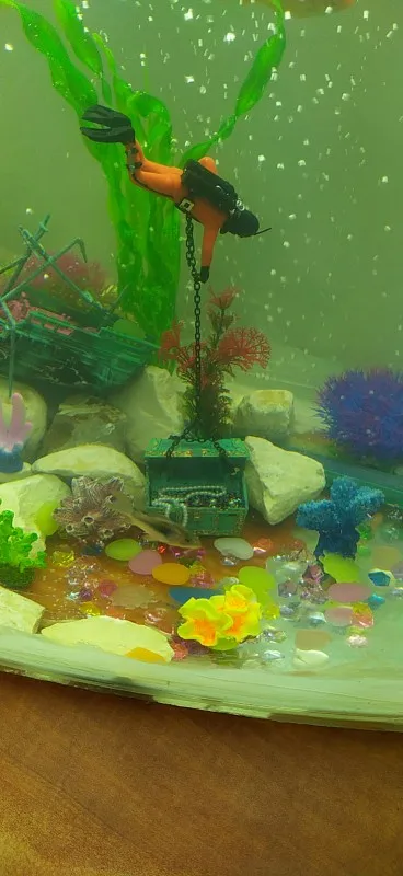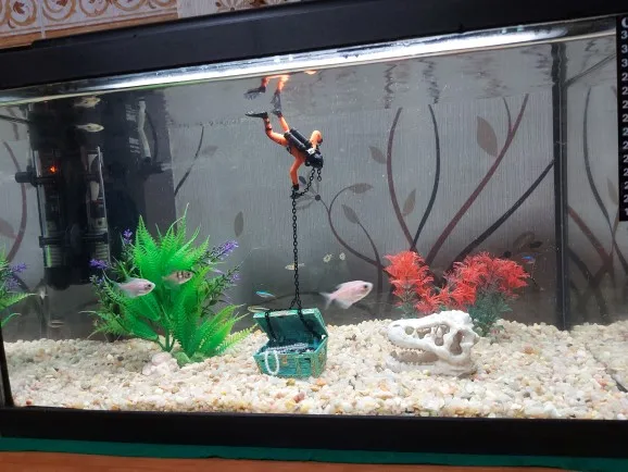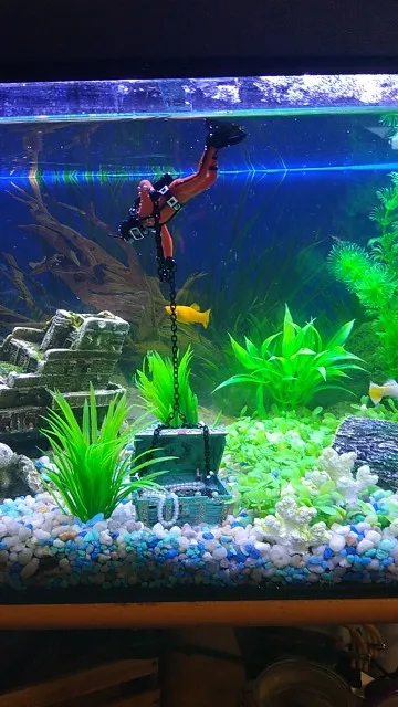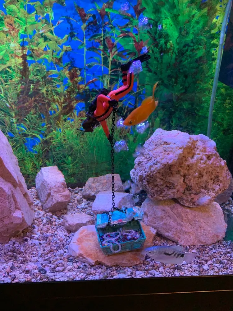 Водолаз-мечта детства! Супер.Легко подсоединяется к аэратору,пузырьки идут.Блестки в сундуке и жемчуг приклеен хорошо.Ребенок стал играть как получили,как наигрался,сполоснула и прикрепила.Все работает.Дошел со всеми моими заказами декорациями для аквариума и от других продавцов в 1 посылке.Спасибо.Получила на почте.Купила за 4.82. Пересыл где-то 2-2.5 месяца...Рекомендую.