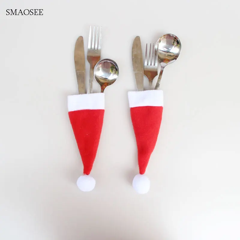 10 шт.лот 2022 рождественские украшения для дома, шапка, столовая посуда, сумки для столовых приборов, ножей, визиток, держатель с карманами, товары для рождевечерние, Кепка
