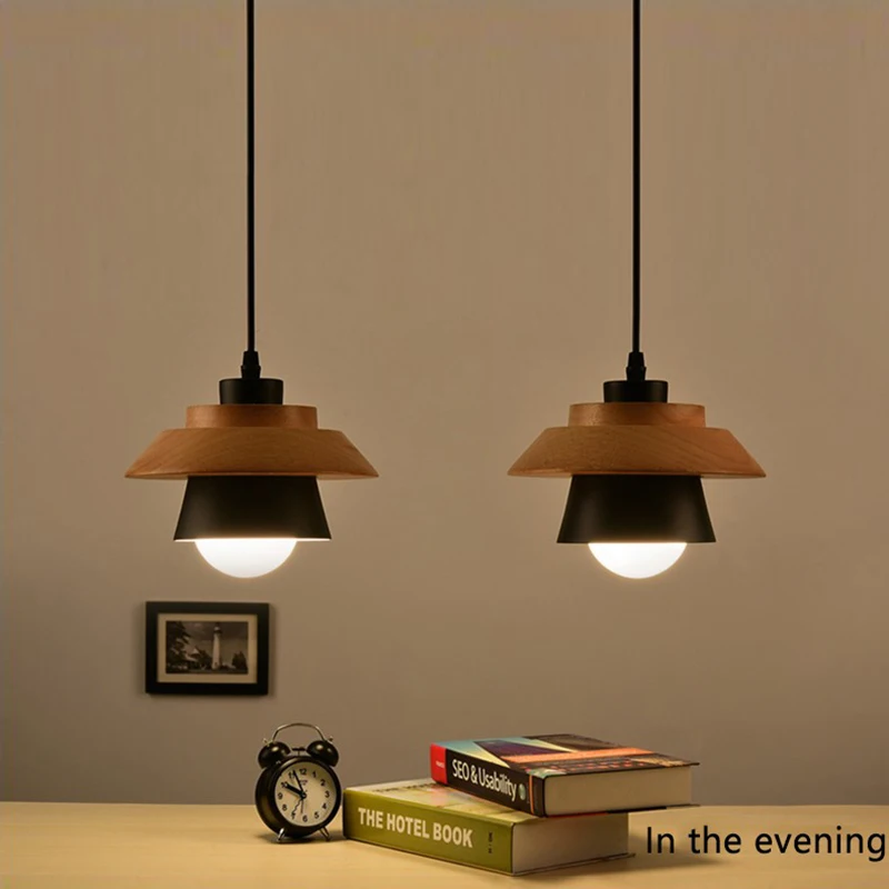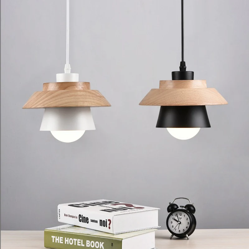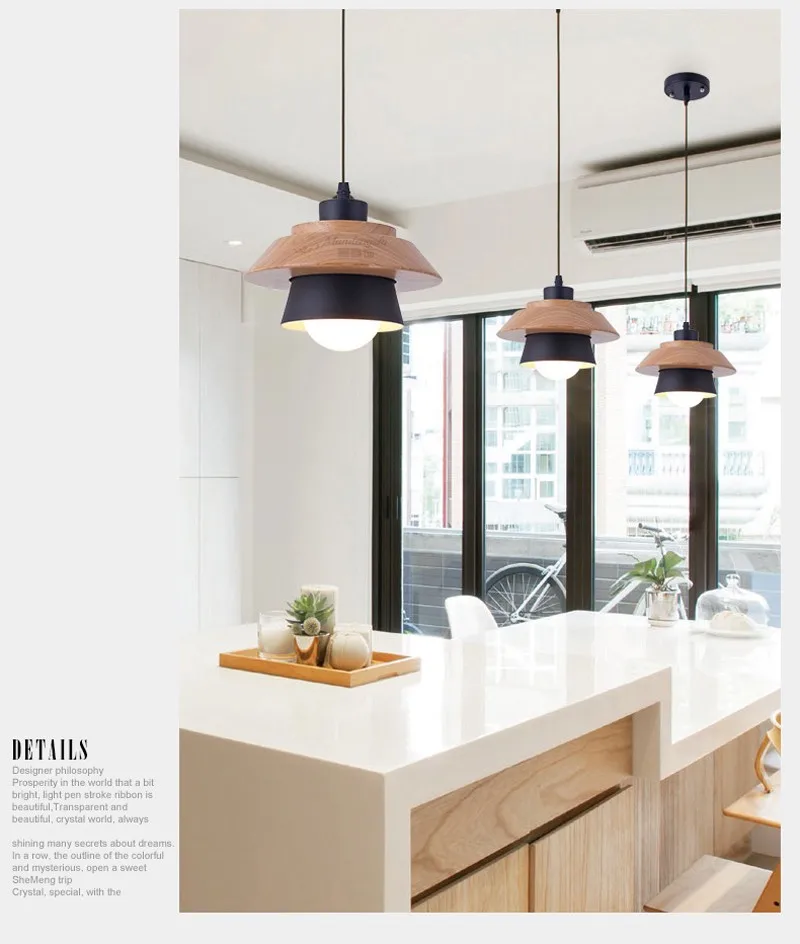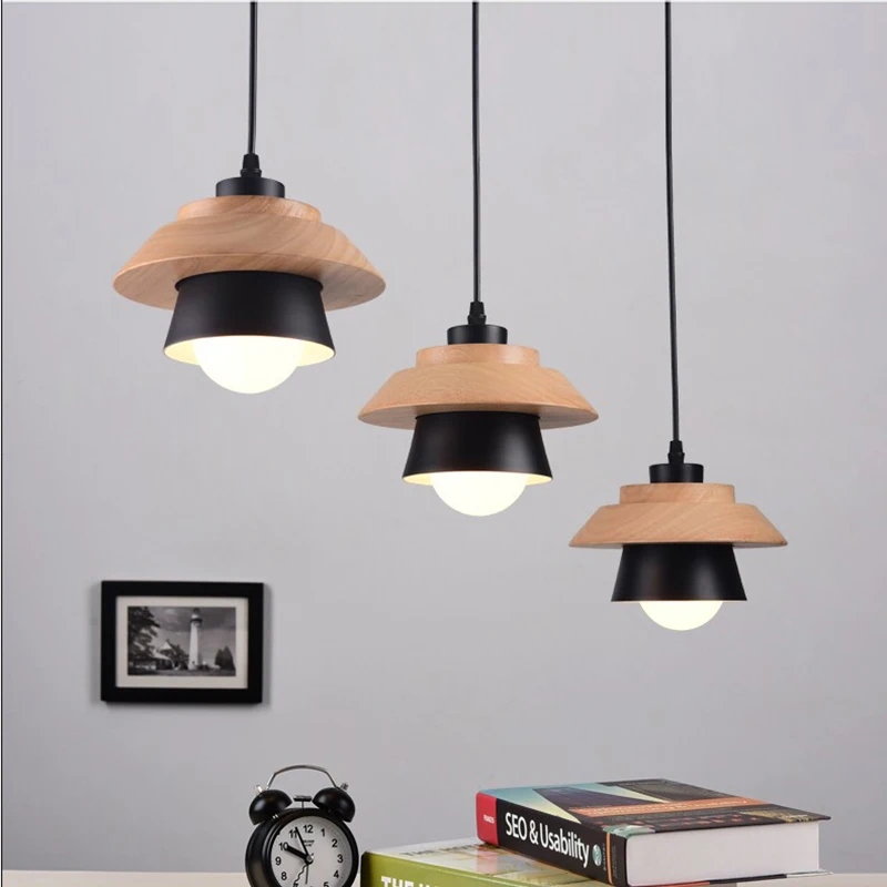Подвесная лампа E27 в скандинавском стиле, декоративный алюминиевый деревянный современный светильник ильник черного и белого цвета с подвесками