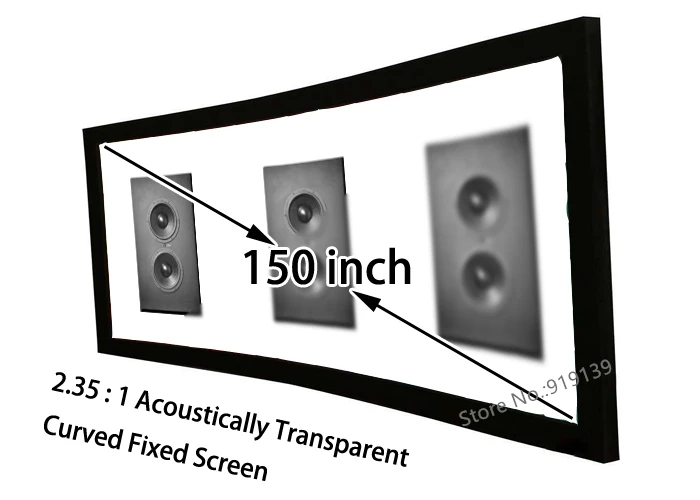 HD изогнутый экран 150 "Диагональ 2,35: 1 акустически прозрачный Фиксированный экран алюминиевая рама передней проекции экраны
