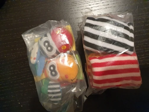 Восхитительный! Какая милая идея для малышей! И точно так же, как на фотографиях. Уши издают резкие звуки, а нос-очень легкие. Благодаря тому, что дети постоянно держат ноги в воздухе, я уверен, что им понравится играть в эти носки! Заказал еще одну пару для друзей, у которых тоже есть ребенок. Я не пробовал те, что на запястье, но они тоже могут быть милыми!