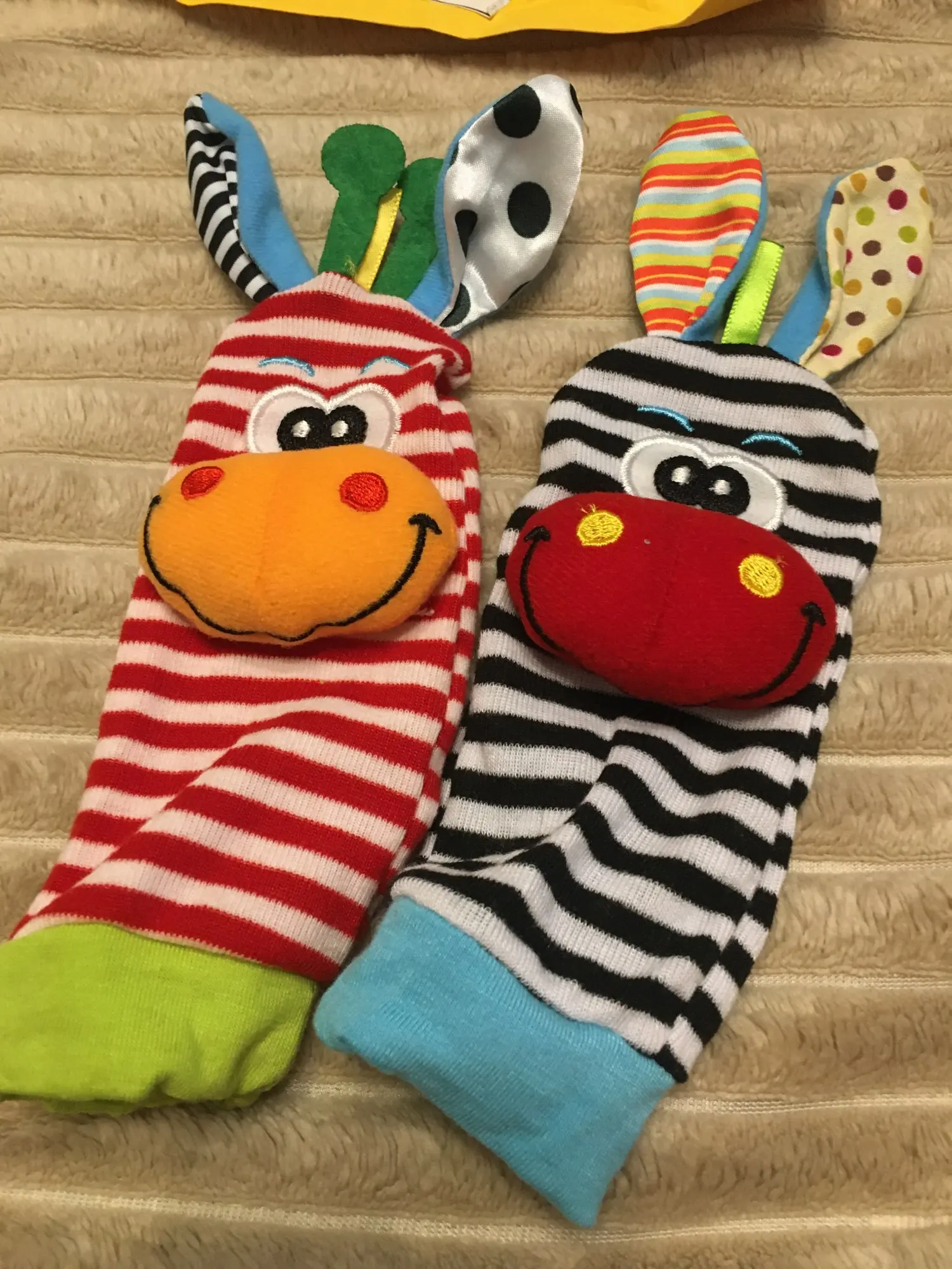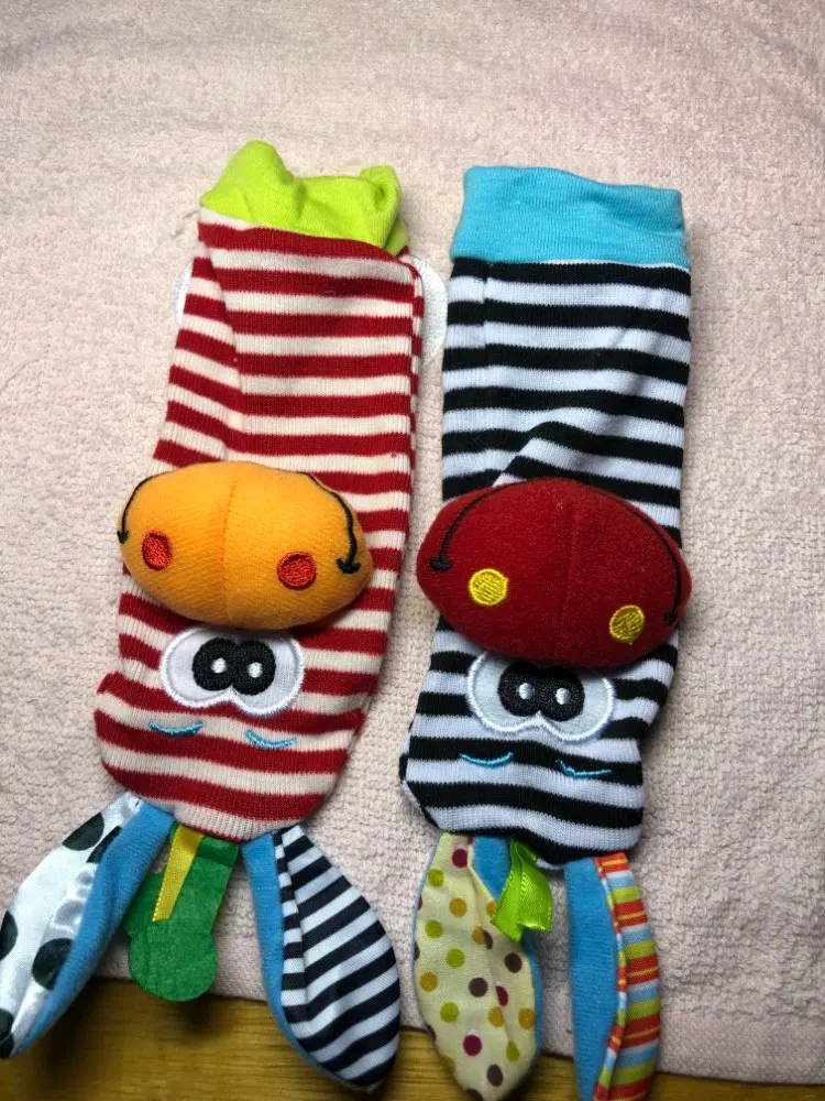 Как игрушка отвлекушка очень симпатичные носочки.Ушки шуршат,носики гремят как погремушка.Спасибо ,мы довольны