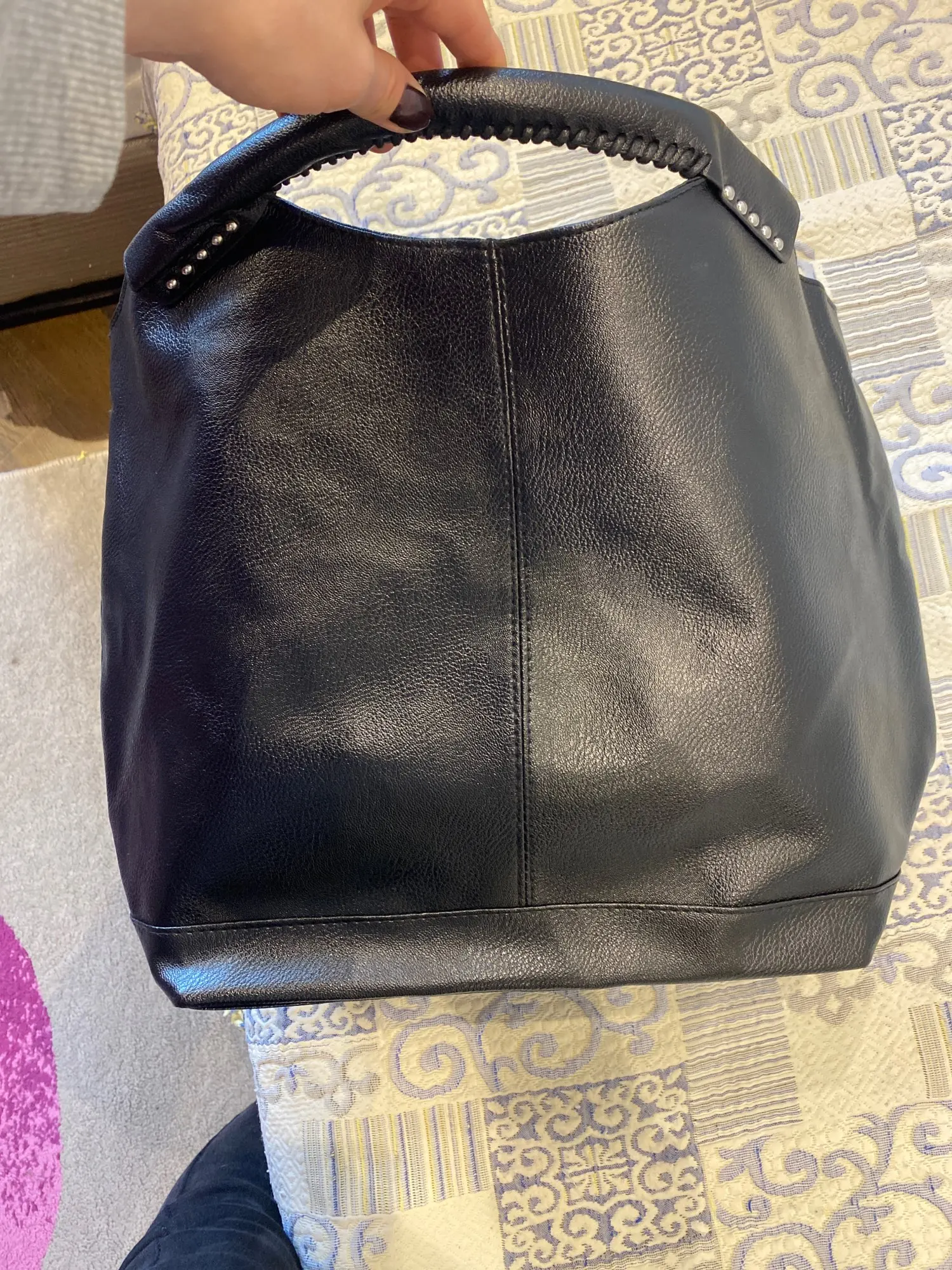 Отличная и большая сумка, все как в описании, пришла ровно в срок, даже немного раньше) Большая, черная и вместительная. Продавца рекомендую, жена осталась довольна)