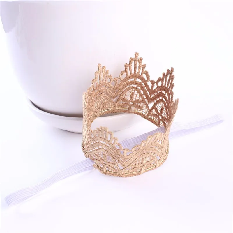 ГОРЯЧАЯ искусственная элегантная Младенческая новорожденная мини фетровая блестящая золотая кружевная Корона повязки для детей девочек DIY аксессуары для волос
