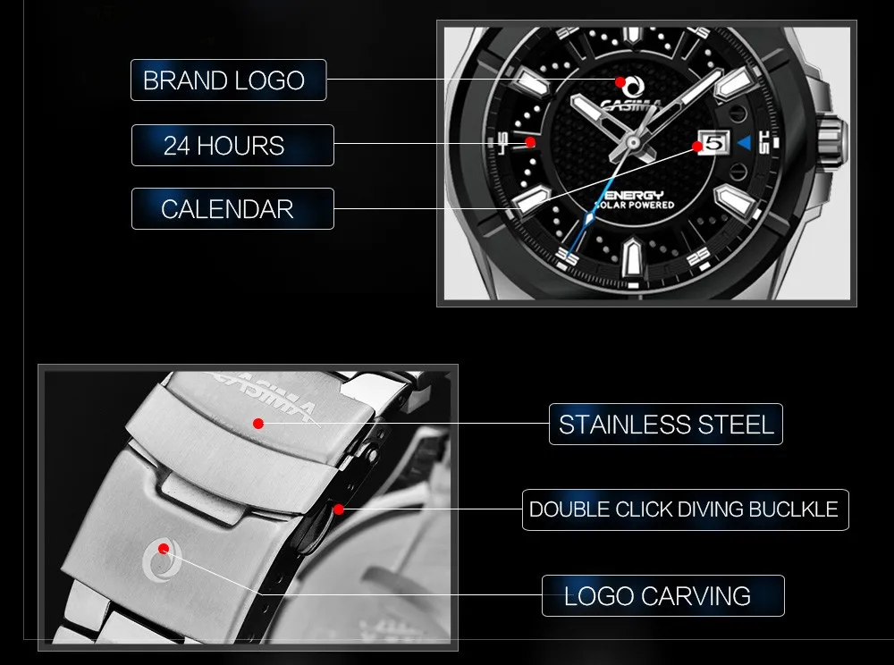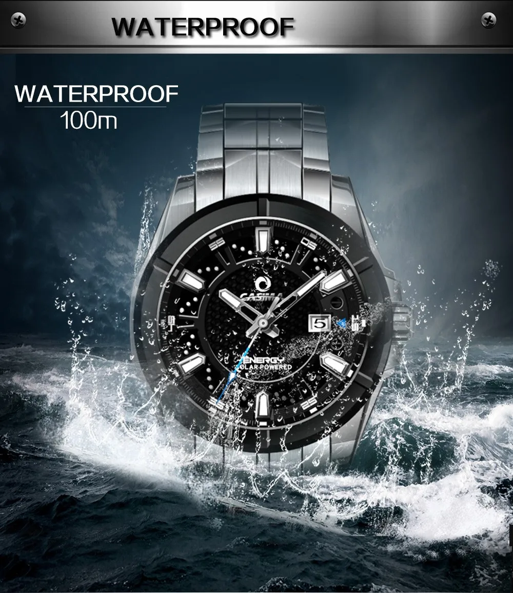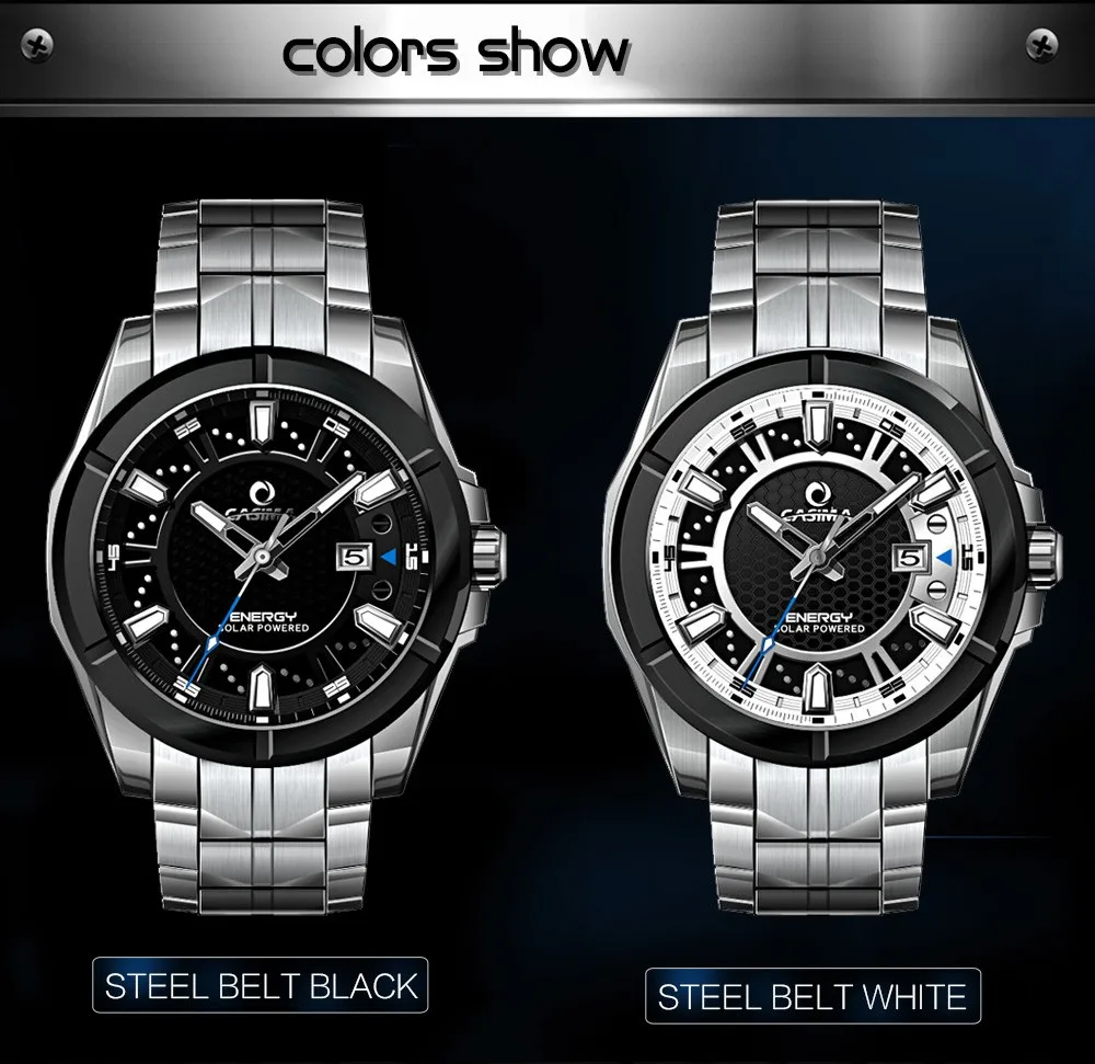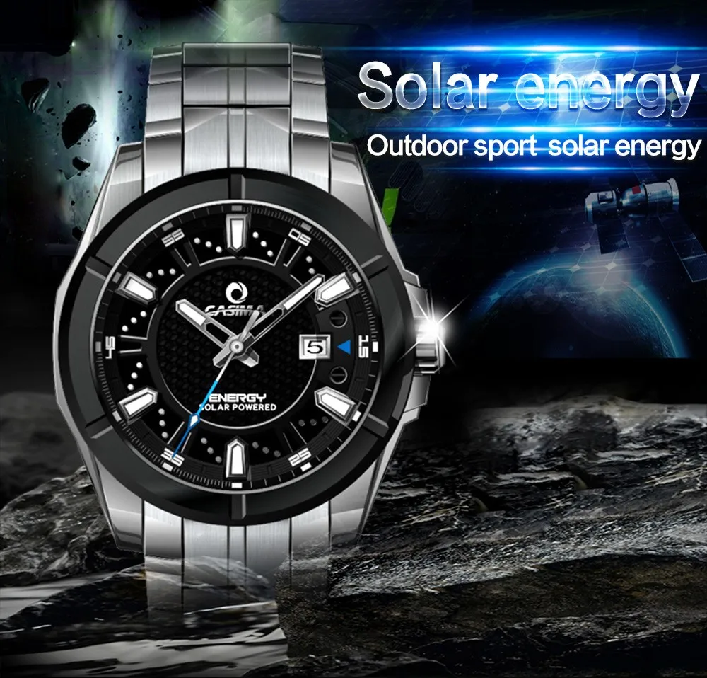 Часы наручные CASIMA мужские кварцевые, роскошные с сапфировым календарем, водонепроницаемые, в стиле милитари, с солнечной батареей