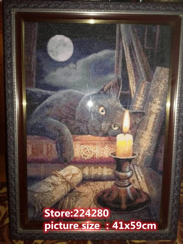 Набор для вышивки крестиком Cat, который смотрит на свечи, хочет почитать, 11ct 14CT