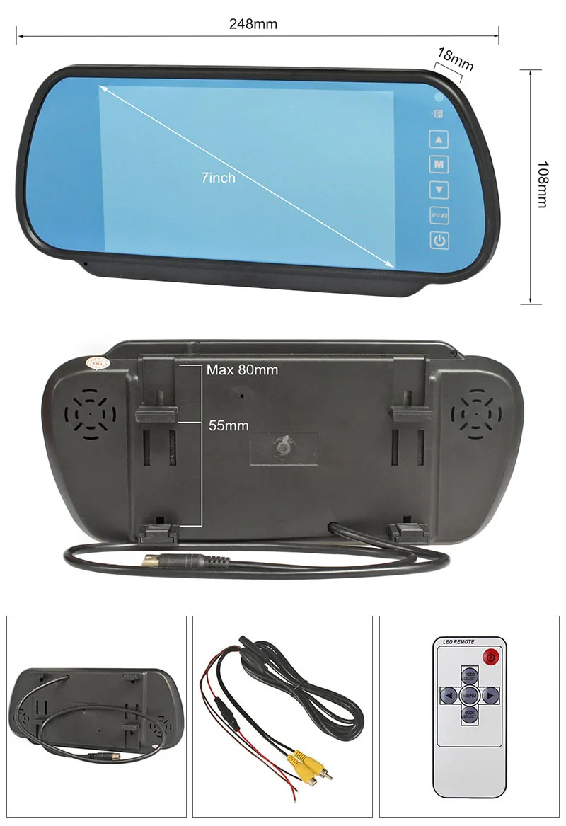 Зеркало заднего вида, 7 дюймов, водонепроницаемый, с датчиком