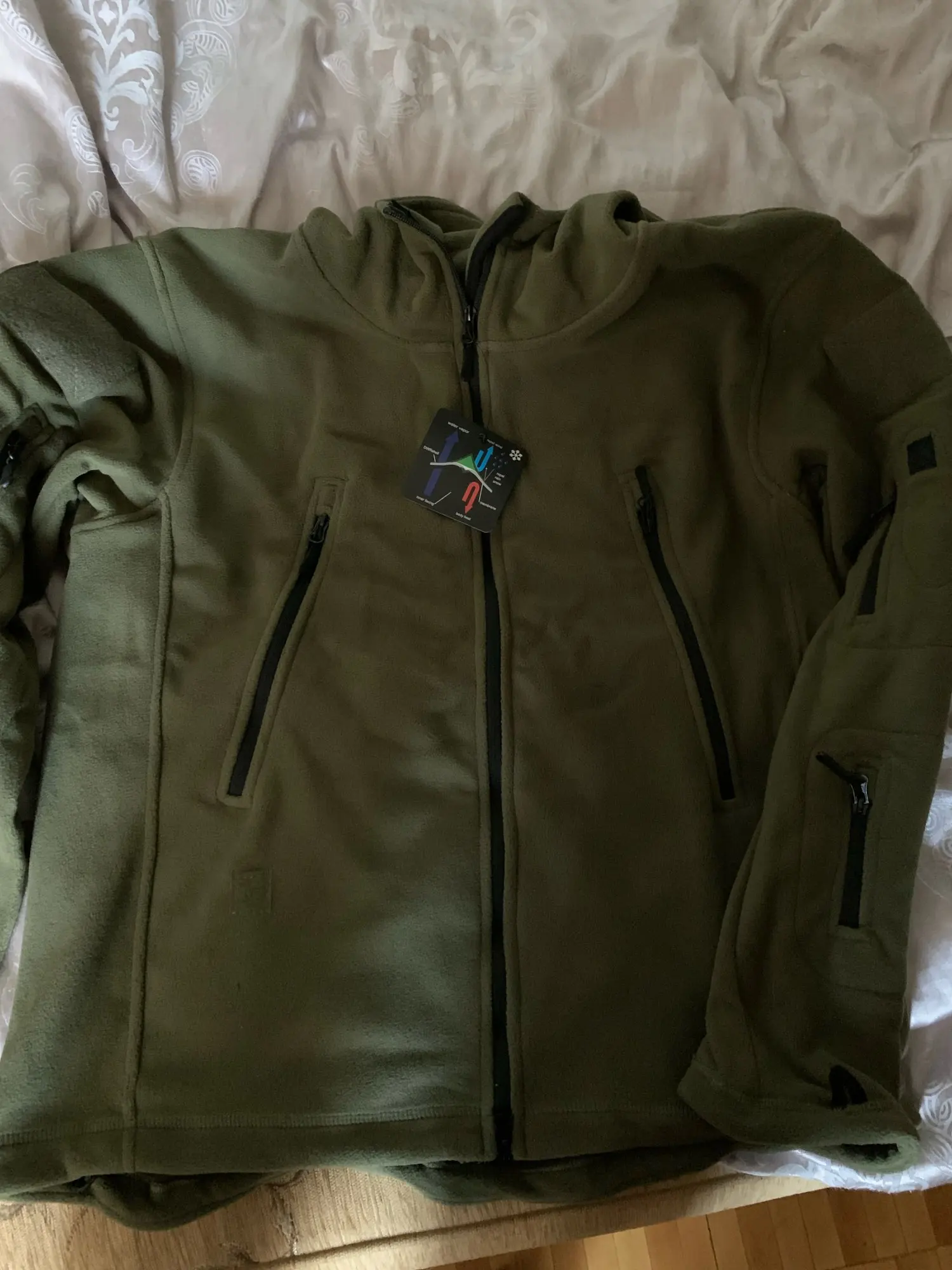 Куртка очень хорошего качества, рекомендую. Цвет как на картинке, Флис не тонкий. Пошито хорошо, ровно. Мои параметры рост 170 вес 95, обхват груди 116, ношу русский размер 54-56, Размер L сел как влитой, ничто не висит и не жмёт, если любите носить куртки, чтобы было свободно, берите на размер больше. Одназначно рекомендую к покупке.