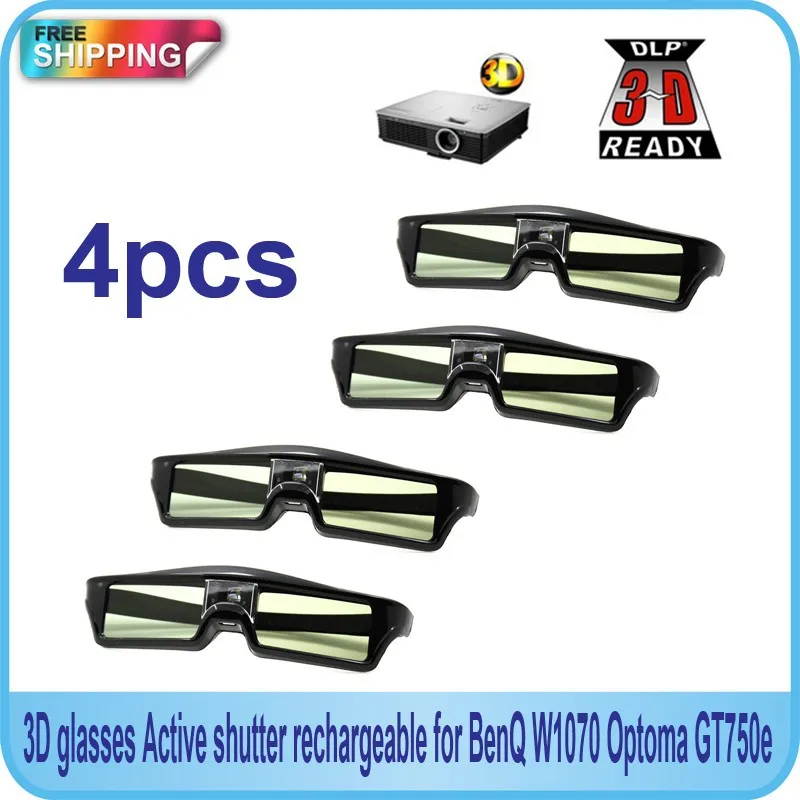 3D очки Бесплатная доставка! 4 шт./лот 3D очки активный затвор перезаряжаемые для BenQ W1070 MX613ST Optoma GT750e DLP 3D излучатель проектор очки
