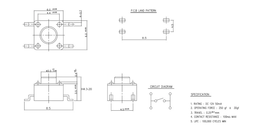100 шт. SMD Tact кнопочный переключатель 6X6X5mm Micro Switch 6*6*5 мм