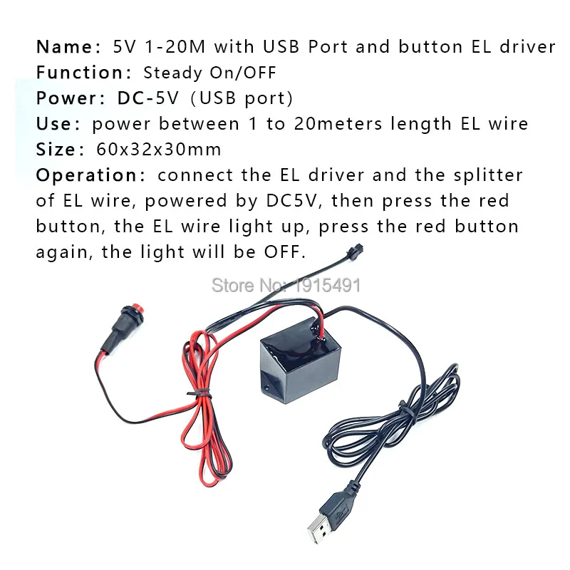 Фотоинвертор с мигающим и звуковым управлением EL Driver для длинного EL провода и EL strip для украшения праздничного освещения