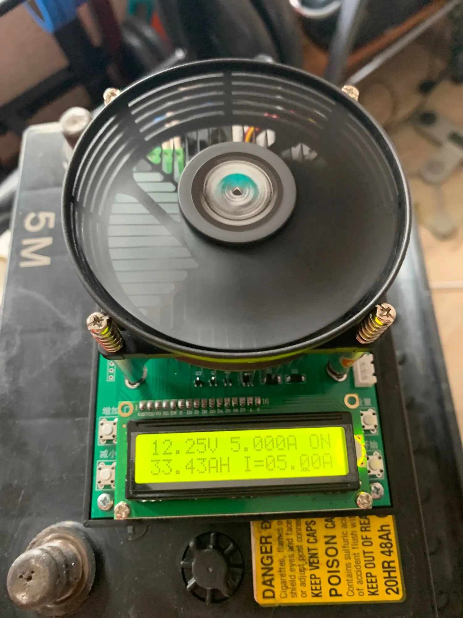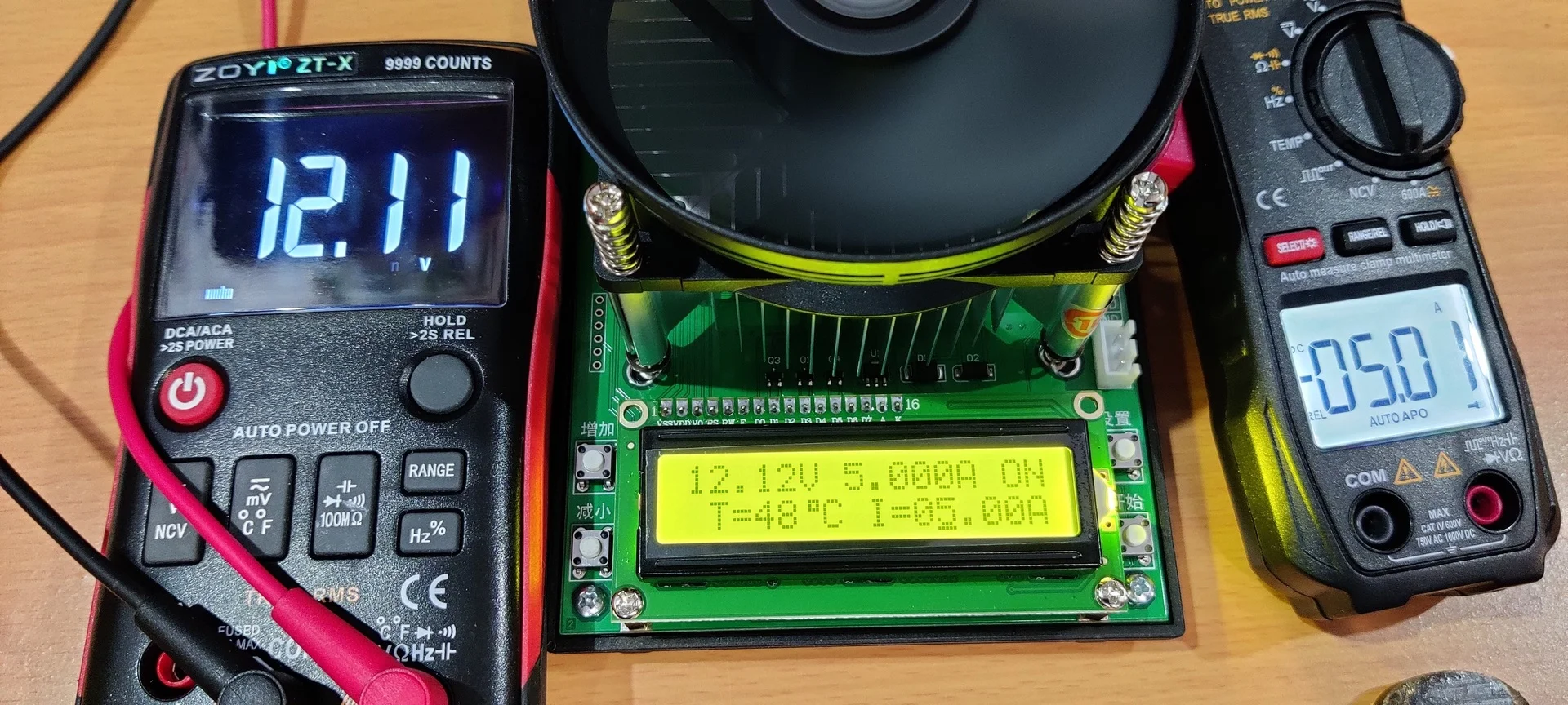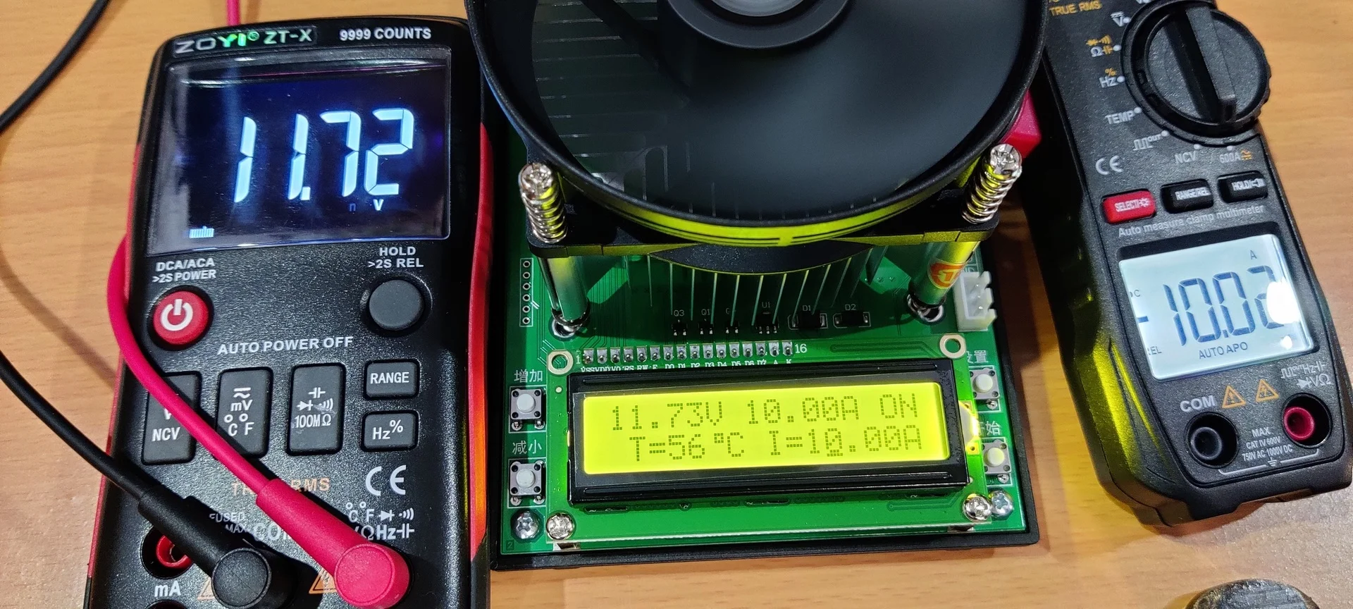 Протестировал нагрузку, работает хорошо, что заметил : она потребляет где-то 100 мА, а с вентилятором 200 мА, при работающей нагрузке в 3А
