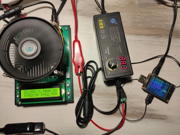 Нагрузку получил довольно быстро. На максимальной мощности не пробовал, на маленьких 1- 2А работает. Кулер включается при 41 - 42 С. Брал с запасом по мощности, думаю 6-8А при 12.5 -13.5 V АКБ выдержит. Что заявлено - считает. Погрешности в измерениях меня устраивают.