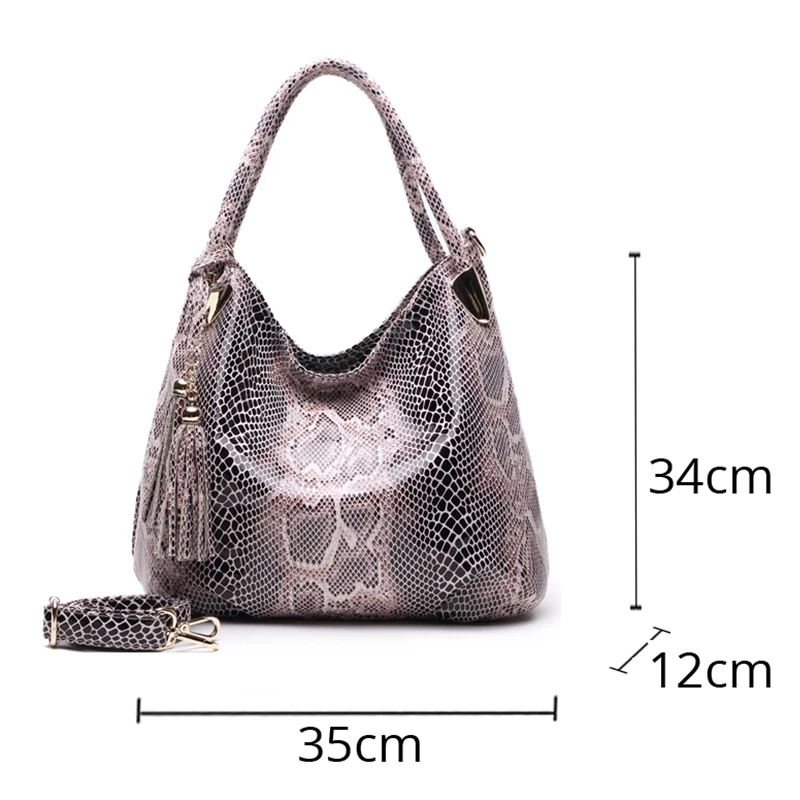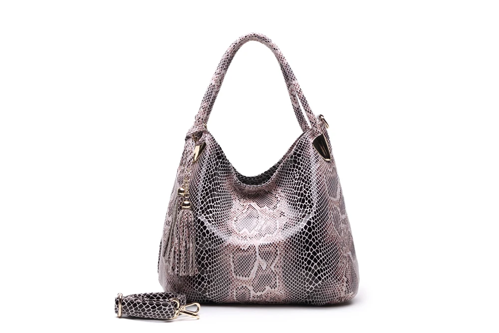 Большая распродажа индивидуальных модных вместительных дамских сумок со змеиным принтом, новые сумки из тисненой искусственной кожи с кисточками через плечо для женщин GPY01