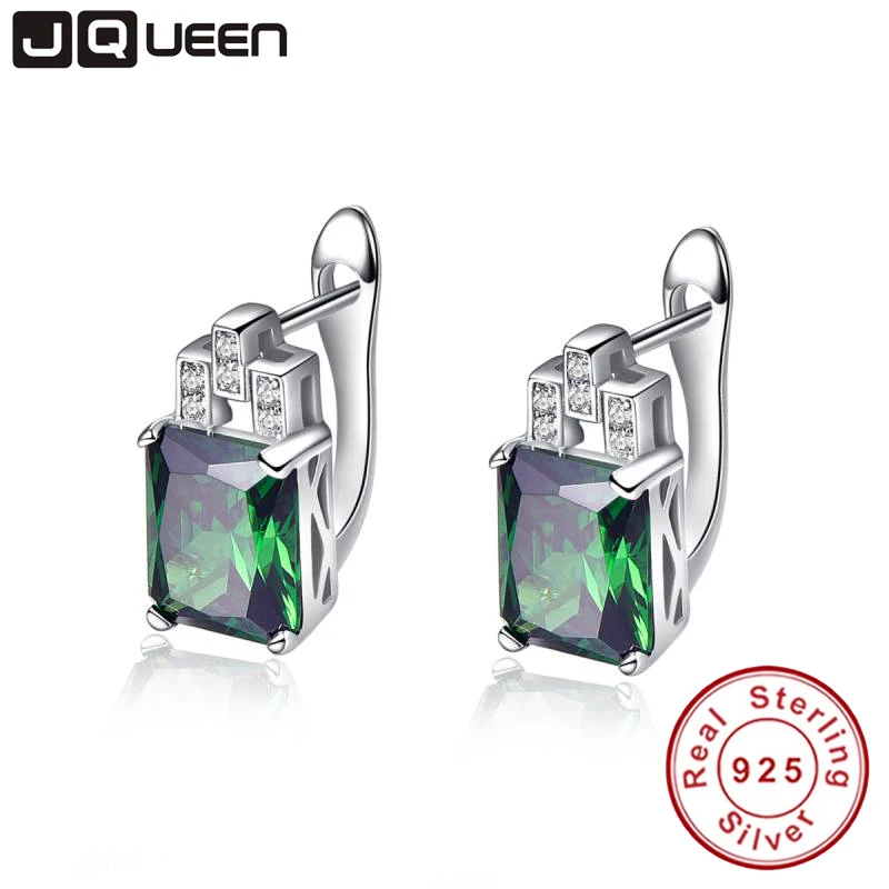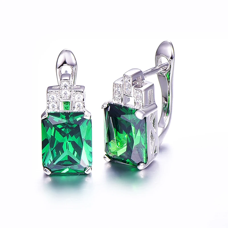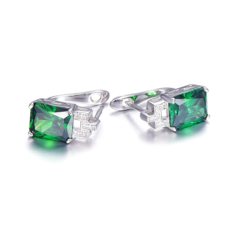Серьги-клипсы женские из серебра 925 пробы с зеленым изумрудом