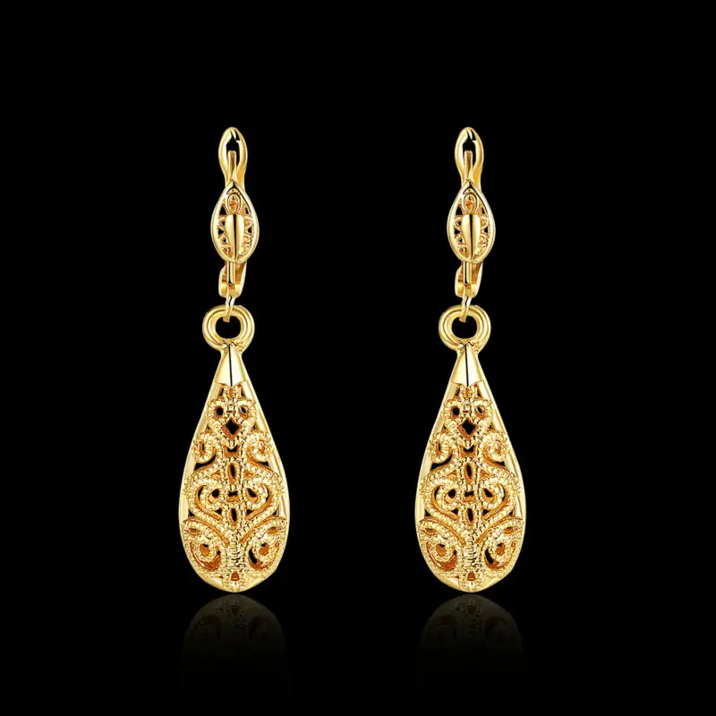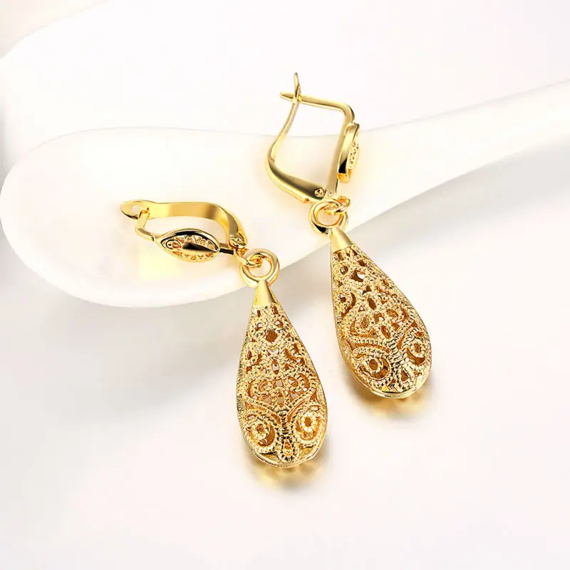 Женские Винтажные висячие серьги с рисунком, золотистого цвета, в виде капель воды, для свадебной вечеринки