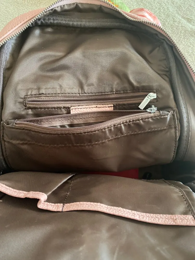 Рюкзачок замечательный, очень хорошо пошит, и очень хороший фасончик . Внутри три кармашка на молнии . Доставка в Венгрию была очень быстрой, покупкой очень довольна!