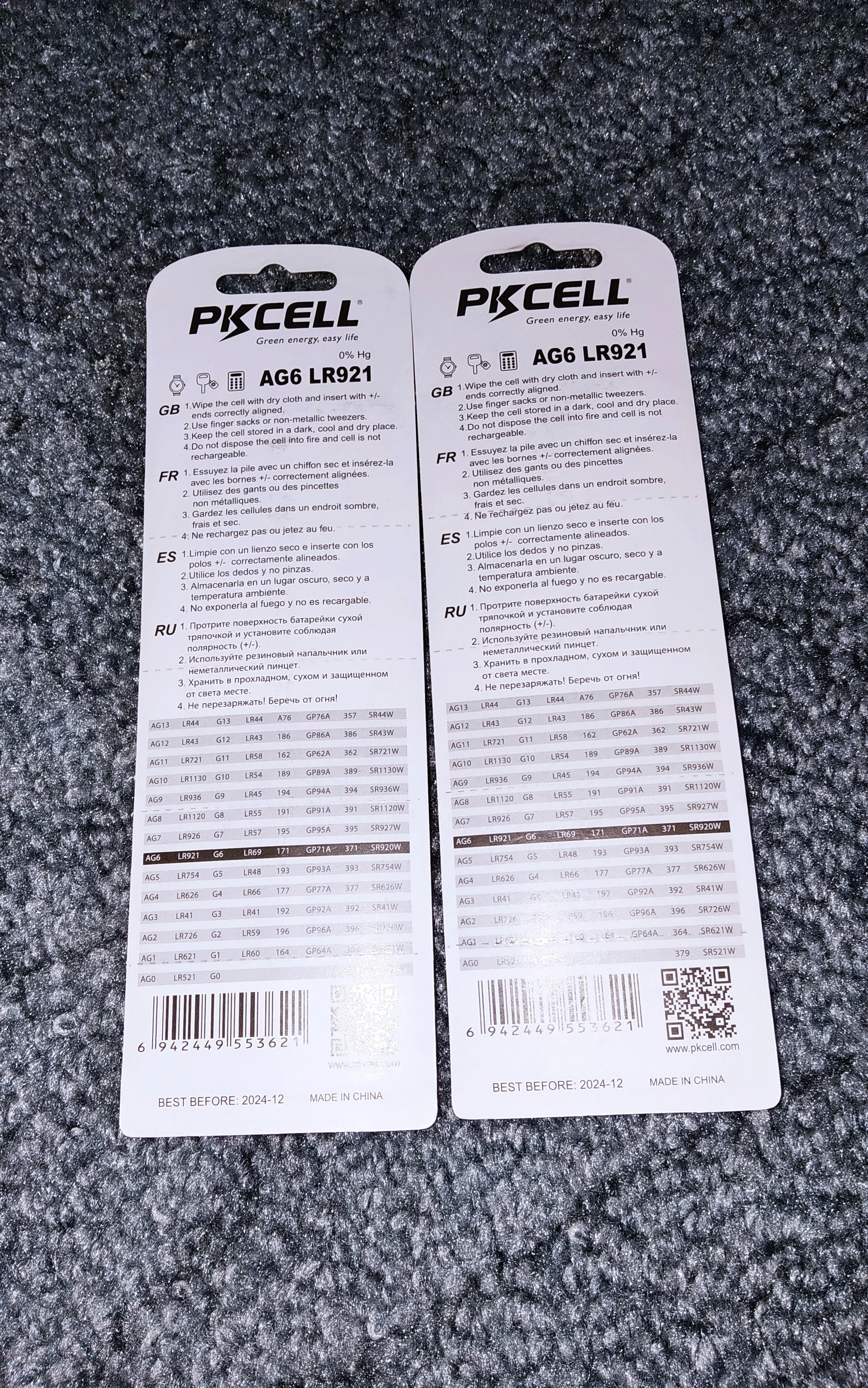 Посылка входит: 20 батарей AG6