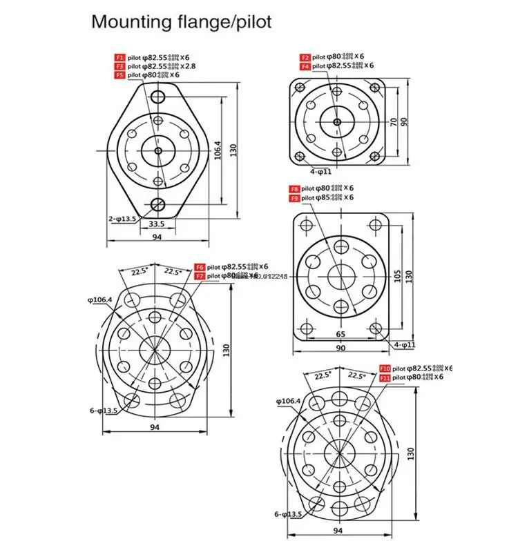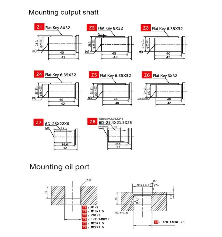 5.Различные типы соединений фланца, выходного вала и масляного порта.