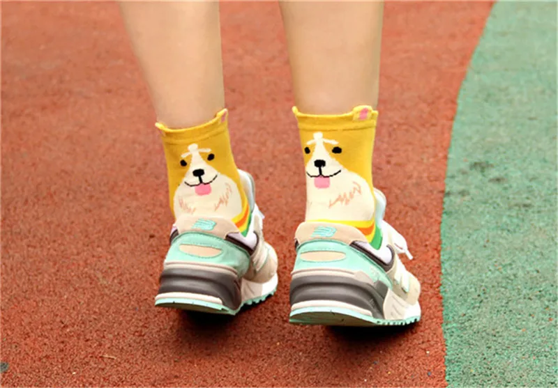 Женские милые носки с мультяшным рисунком, осенне-зимние Смешные носки в виде Шиба-ЛНУ, модные женские и женские милые хлопковые носки с собакой, 1 пара