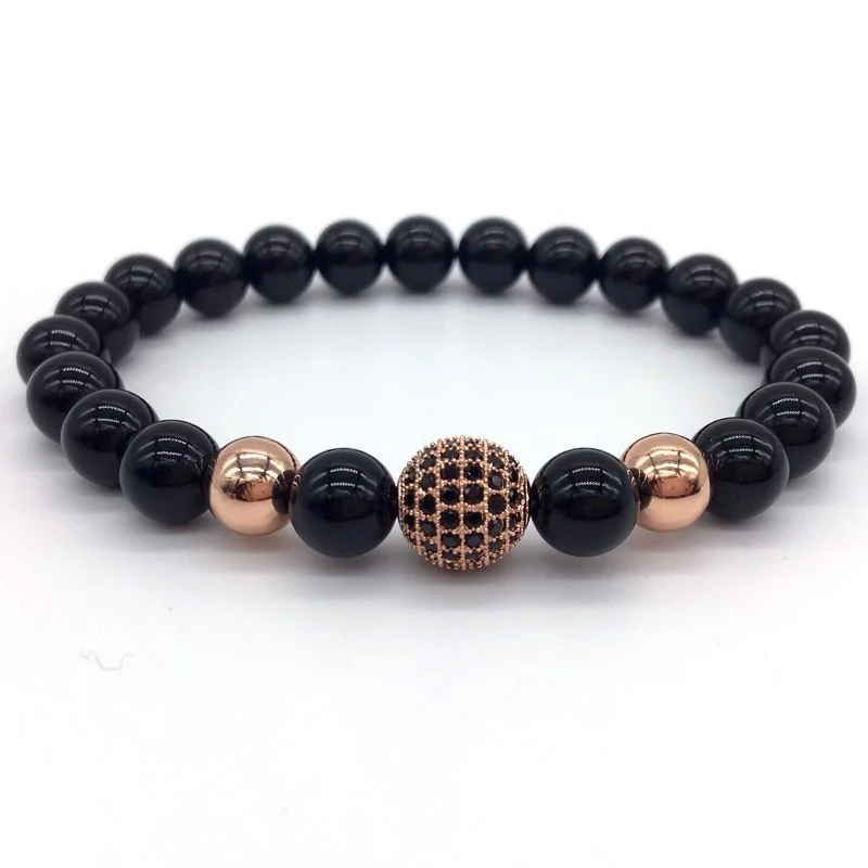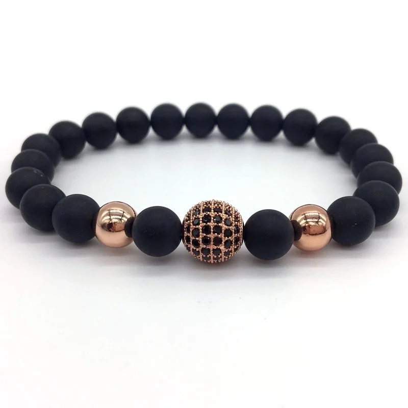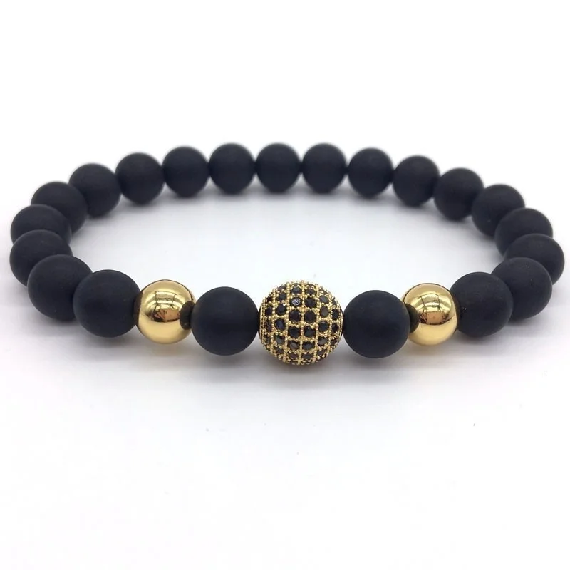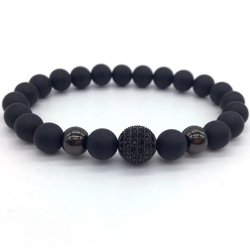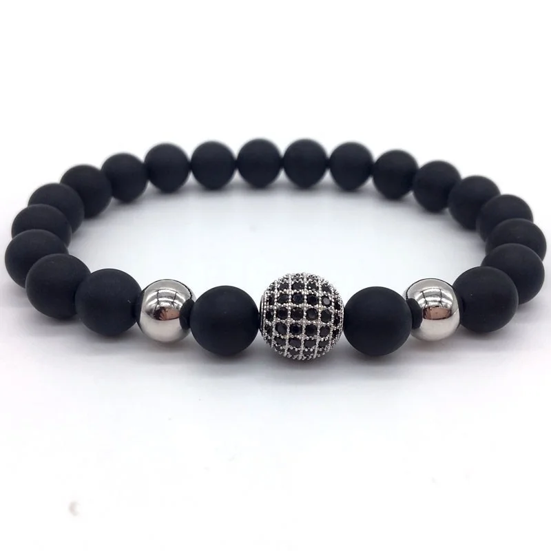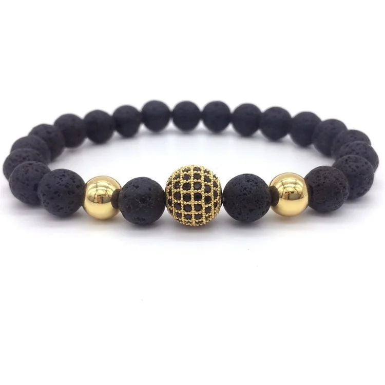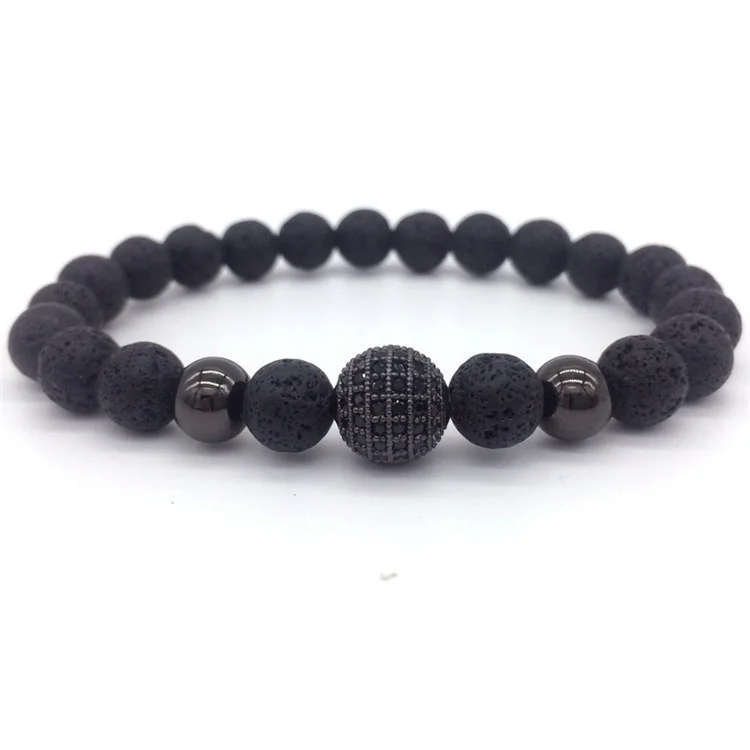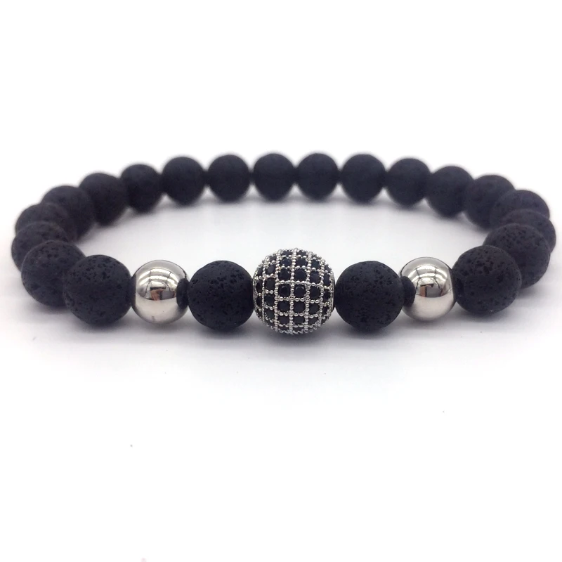 NAIQUBE 2018 новая мода высокое качество 8 мм лавы Smatte каменные бусы и черный CZ мяч Для мужчин Шарм Браслеты Для мужчин ювелирные изделия подарок