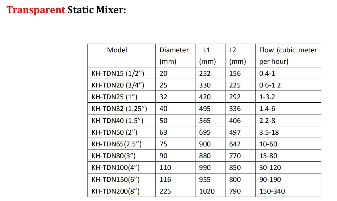 Примечание: длина и размер внутреннего диаметра могут быть изменены. Размер и количество портов дозирования могут быть изменены. Также мы можем предоставить статический смеситель с фланцами.