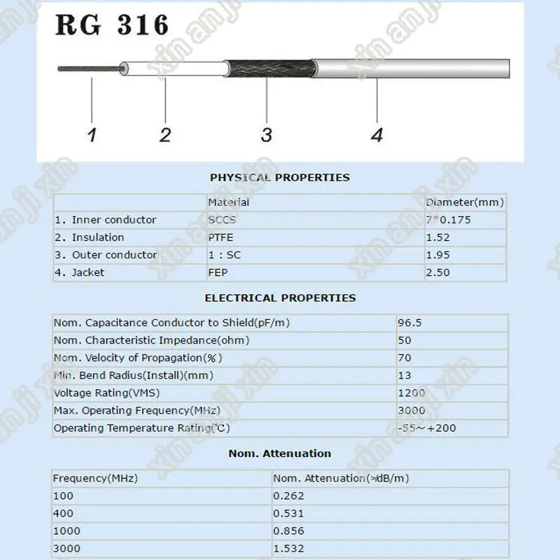 Радиочастотный коаксиальный кабель RG316, 10 метров, 2,5 мм, 50 ом, с низкими потерями, 30 футов, для обжимного разъема, быстрая доставка
