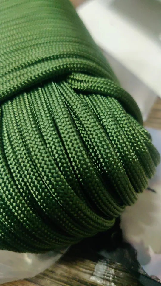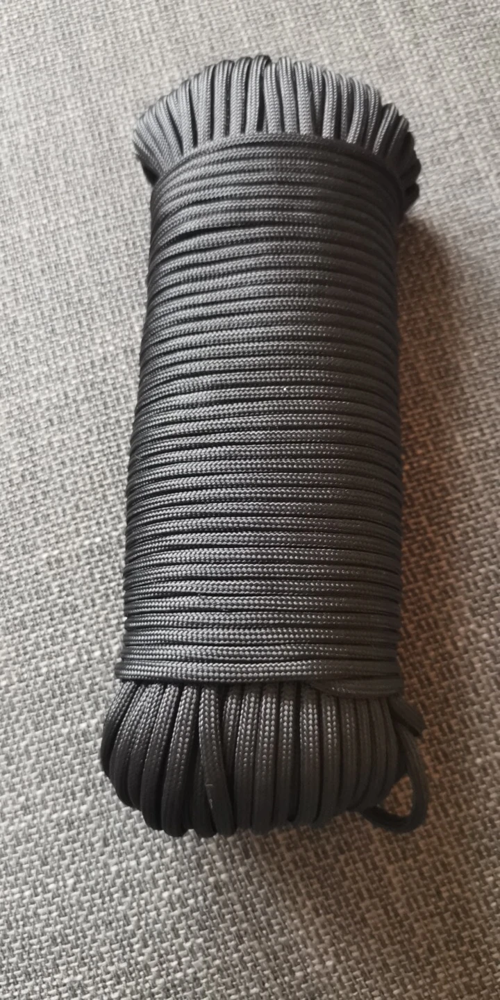 Strong rope - supports adult male hammock weight with no sign of stretching, no issues. 8 cores and outer sheath needs melting when cutting. Holds Knots well.