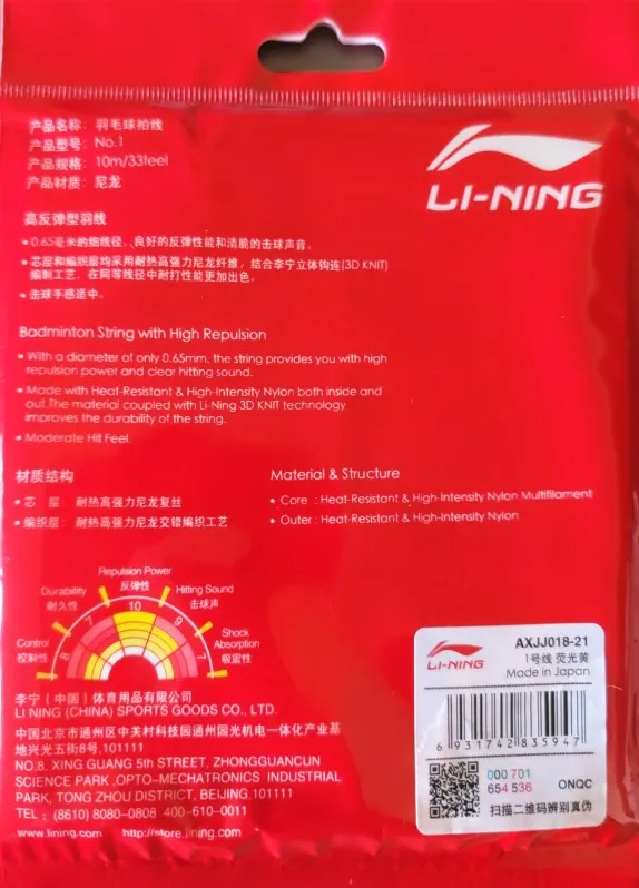 Накладки для ракетки для бадминтона, струна для ракетки China Nation Team No.157, долговечная, мощная, литий-ионная сеть, леска для ракетки Li Ning L272OLA