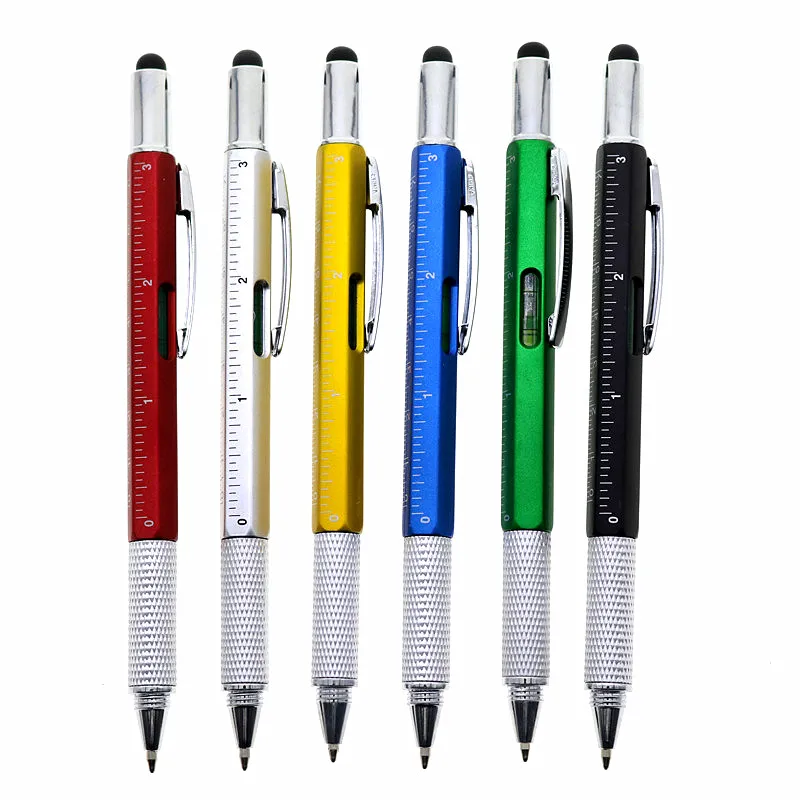 1 шт./лот Новое поступление Инструмент Шариковая ручка отвертка линейка спиртовой уровень с топом и шкалой многофункциональная 6 в 1 ручкаНазвание продукта: шариковая ручкаКатегория: офисные канцтовары, шариковая ручкаМатериал: пластикЦвета чернил: синийЦвета ручки: синий, зеленый, черный, красный, желтый, серебристыйСтиль: мультфильм