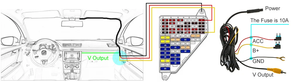 Предназначен для оригинального стиля автомобиля и цвета автомобиля.Скрытая задняя часть заднего зеркала.Легкий в установке. Мы отправляем предохранитель среднего размера, он подходит для большинства автомобилей, если нет, вы можете вручную подключить питание.Он будет записывать автоматически при включении зажигания. Он также будет автоматически записывать старый файл.Нет встроенной литиевой батареи, Избегайте любого риска.Блок предохранителей находится под рулем или проходной стороной, вы можете сослаться на Ваше руководство. Наш предохранитель 10А.Вы можете заменить предохранитель непосредственно в некоторых автомобилях, вы можете вручную подключить провод (отрезать ножку предохранителя видеорегистратора) к предохранителю для некоторых автомобилей.Черный провод (GND):Вы можете подключить его к любым металлическим частям.Красный провод (ACC):12 В (+), когда вы вставляете ключ в переключатель зажигания. Провод ACC предлагает питание/электричество только когда вы вставляете ключ автомобиля в переключатель зажигания и поворачиваете его влево. Например, прикуриватель, радио и т. Д.Желтый провод (B +):12 В (+), этот провод всегда предлагает мощность/электричество даже транспортное средство выключено. Такие как порты для небольших огней/купольных огней/стоп-сигналов/аварийных мигающих огней и т. Д.Примечание:Если желтый провод потеряет питание при выключенном автомобиле, видеорегистратор потеряет все настройки, включая дату/время и т. Д.