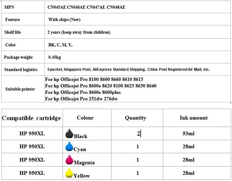4 совместимый hp 950 hp 951 чернильный картридж для hp 950 951 XL O...