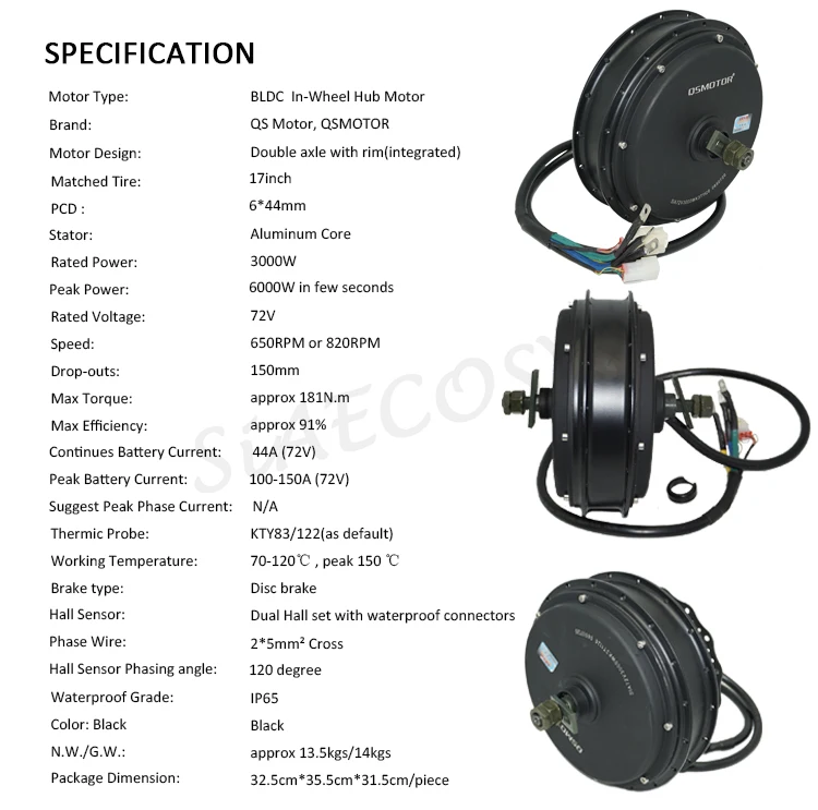 Это QS Электрический колесный велосипед спицы ступицы двигателя для конверсионных комплектов, которые мощность в диапазоне от 500 Вт до 3000 Вт Номинальная, выпадающие 150 мм с велосипедным дисковым тормозом.