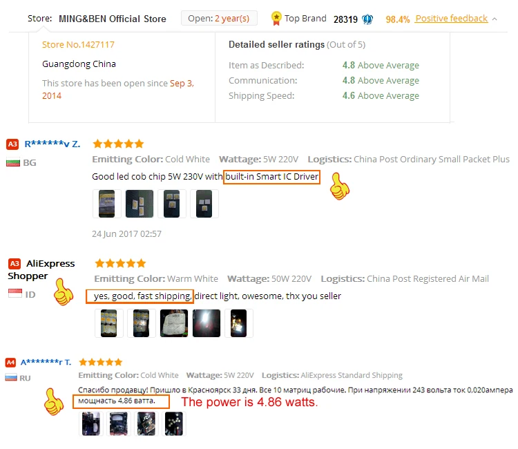 заказал два по двадцать ватт и восемь по тридцать ват,а продавец отправил все по тридцать ватт, поэтому четыре звёзд