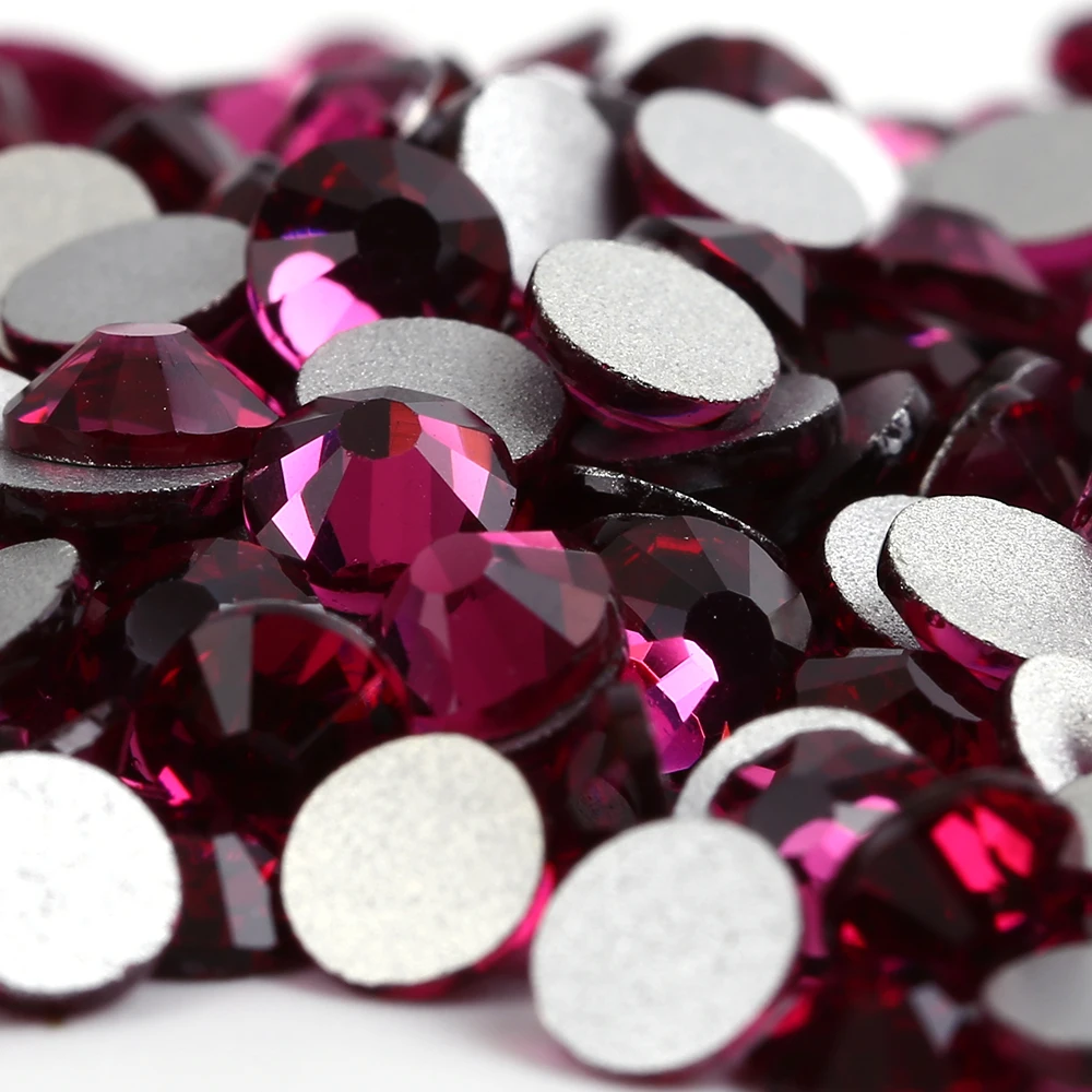 Фуксия стекло 3D украшения для ногтей ss3 ss4 ss5 ss6 ss8 ss10 ss12 ss16 ss20 ss30 ss34 Кристаллы Стразы без исправлений