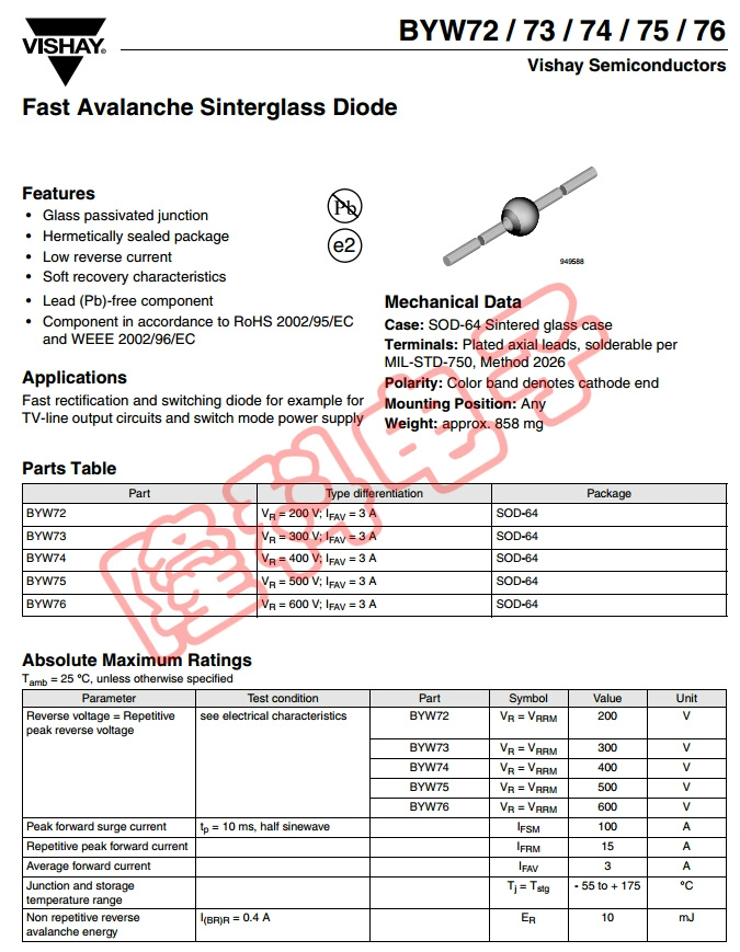 Новый и оригинальный стеклянный пассивированный выпрямительный диод BYW76 3A 600V