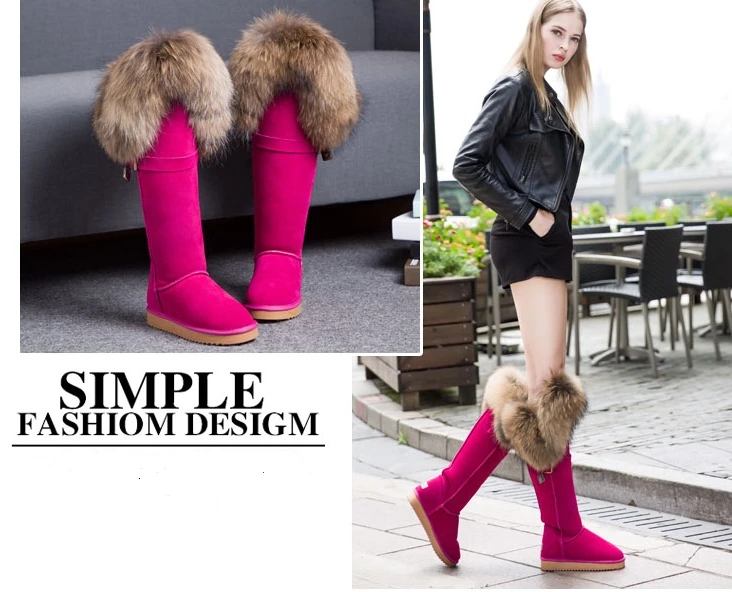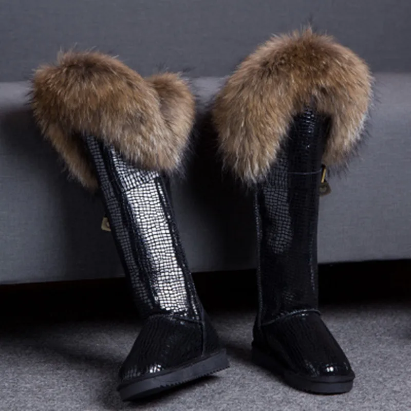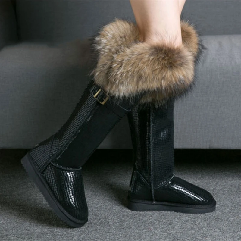 G Zaco Роскошные зимние сапоги из натуральной кожи зимние сапоги до колена с натуральным лисьим мехом водонепроницаемые длинные сапоги на плоской подошве сапоги с мехом енота