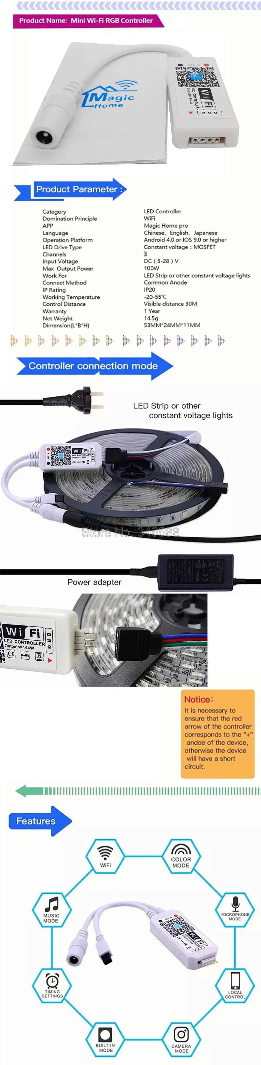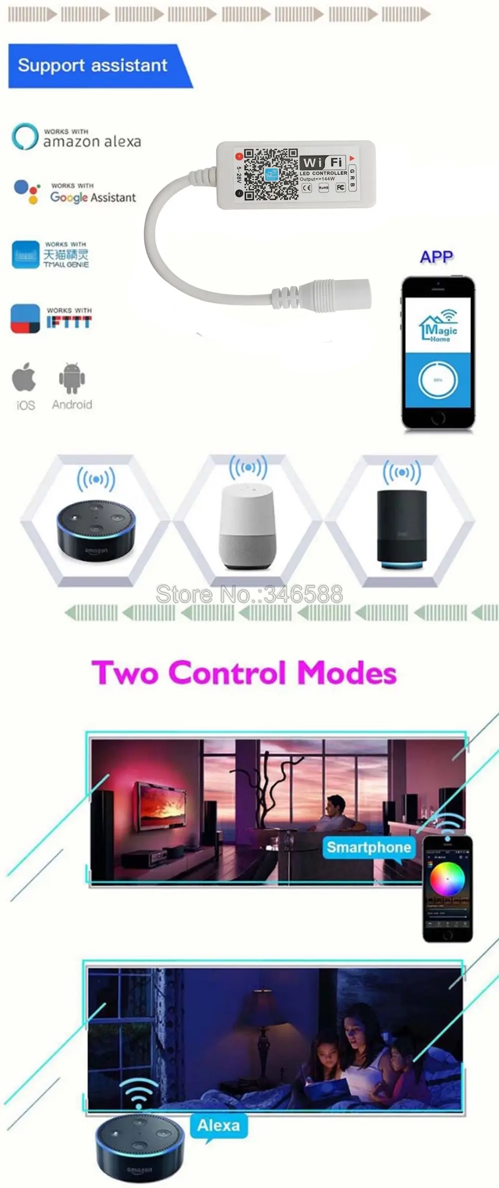 Мини-контроллер Wi-Fi Magic Home, LED-контроллер DC5-28V, управление через приложение, голосовое управление Alexa, Google Home, для светодиодной ленты RGB