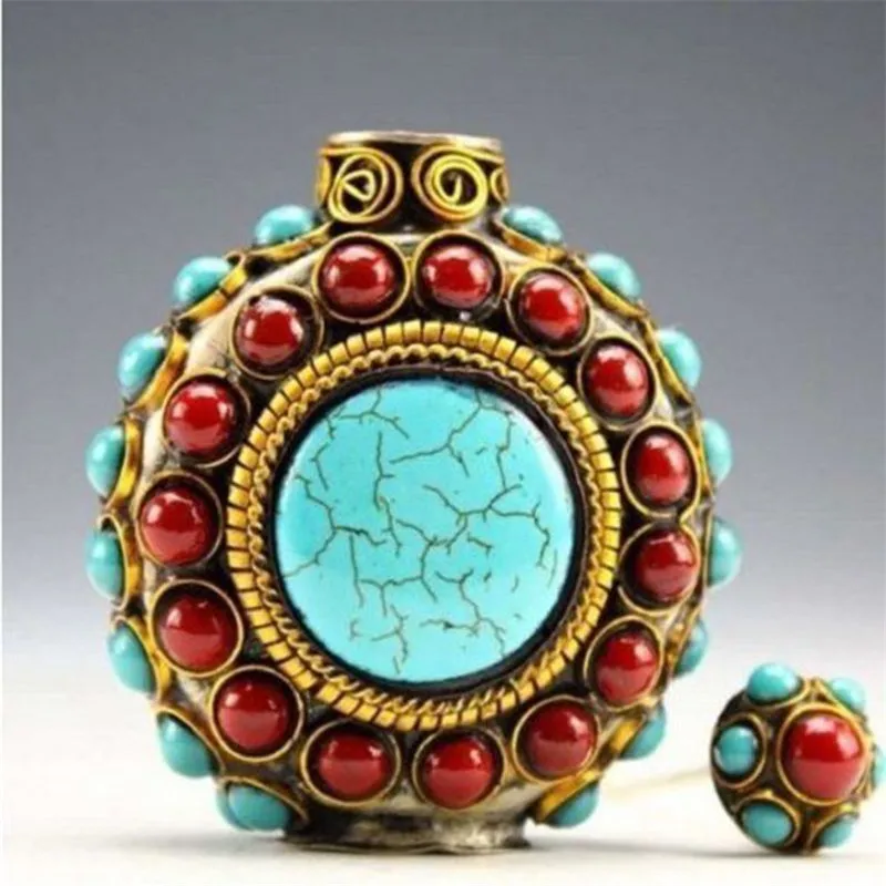 Китайские антикварные бутылки для табака, произведенные Бирюзовая вставка